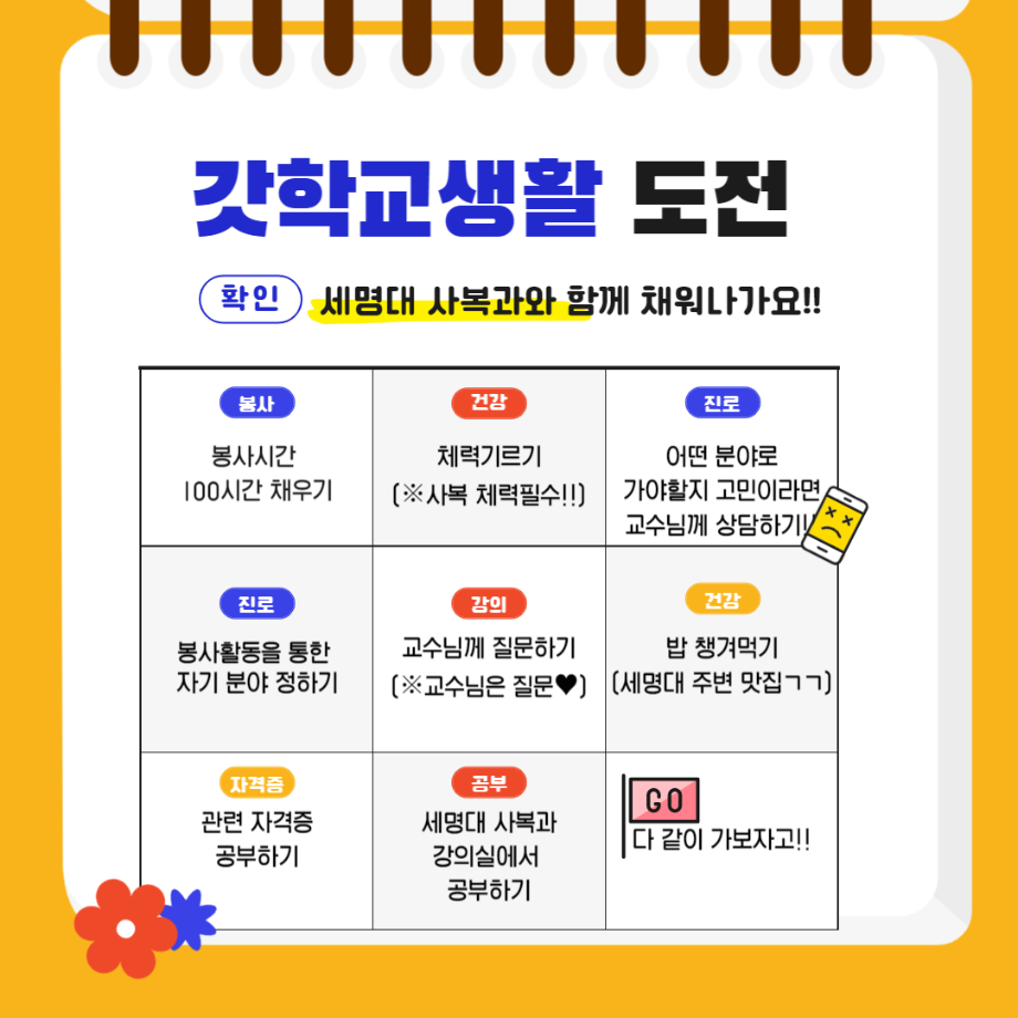 본문 시작 홈으로 커뮤니티 학과소개 교수소개 교육과정 현장실습 및 취업정보 커뮤니티 홈페이지가이드 학생 소통 광장 학과공지 학사일정 학생회 동아리 학생 소통 광장 포토갤러리 전공자료실 서식자료실 학생 소통 광장 페이스북 트위터 프린트 세명대학교사회복지학과 궁금한 학교생활 알아보기 빙고 사회복지학과 2710 2023-01-31 오늘은 세명대학교 사회복지학과 궁금한 학교생활 알아보기 빙고편입니다. 목록 이전정규형 교수님 교과목 소개 다음 세명대학교 사회복지학과 유용식 교수님 알아보기 편 담당부서 : 사회복지학과 담당자 : - 연락처 : 043-649-1799 최종수정일 : 2024-10-26 만족도조사 만족도 조사 이 페이지에서 제공하는 정보에 대하여 만족하시나요? 매우만족 만족 보통 불만족 매우불만족