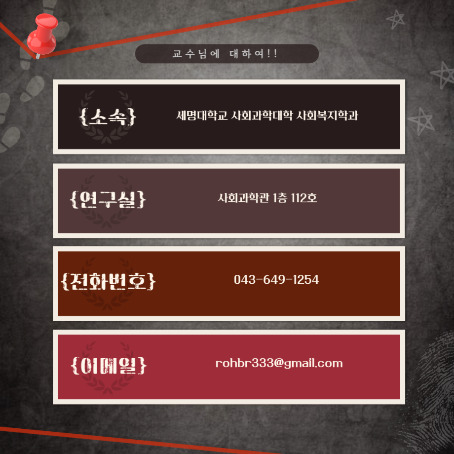 본문 시작 홈으로 커뮤니티 학과소개 교수소개 교육과정 현장실습 및 취업정보 커뮤니티 홈페이지가이드 학생 소통 광장 학과공지 학사일정 학생회 동아리 학생 소통 광장 포토갤러리 전공자료실 서식자료실 학생 소통 광장 페이스북 트위터 프린트 세명대학교 사회복지학과 노법래 교수님 알아보기 사회복지학과 3074 2023-03-02 '세명대학교 사회복지학과 노법래 교수님 알아보기' 편입니다. 목록 이전세명대학교 사회복지학과 권자영 교수님 알아보기 편 다음 세명대학교 사회복지학과 정규형 교수님 알아보기 편 담당부서 : 사회복지학과 담당자 : - 연락처 : 043-649-1799 최종수정일 : 2024-10-26 만족도조사 만족도 조사 이 페이지에서 제공하는 정보에 대하여 만족하시나요? 매우만족 만족 보통 불만족 매우불만족