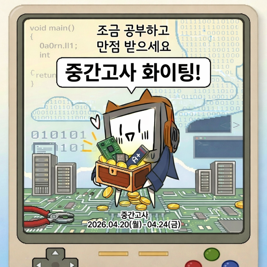 본문 시작 홈으로 학부활동 학부소개 학부활동 교육과정 커뮤니티 학부생활 입학안내 홈페이지가이드 학부갤러리 학부행사 학생회 활동 전공 동아리 학부갤러리 학부갤러리 페이스북 트위터 프린트 🔥🔥 중간고사 모드 ON 🔥🔥 컴퓨터학부 15 2026-04-20 중간고사 기간 : 4/20 ~ 4/24 지금까지 해온 것만으로도 충분합니다 조금만 더 힘내서, 끝까지 파이팅 💪 목록 이전IT 에서 AI로, "AI융합대학" 으로 바뀌었습니다. 다음 🌸 세명대에 봄이 로그인했습니다 🌸 담당부서 : 컴퓨터학부 담당자 : - 연락처 : 043-649-1272 최종수정일 : 2024-10-26 만족도조사 만족도 조사 이 페이지에서 제공하는 정보에 대하여 만족하시나요? 매우만족 만족 보통 불만족 매우불만족