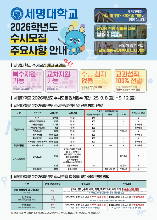 본문 시작 홈으로 학부활동 학부소개 학부활동 교육과정 커뮤니티 학부생활 입학안내 홈페이지가이드 학부갤러리 학부행사 학생회 활동 전공 동아리 학부갤러리 학부갤러리 페이스북 트위터 프린트 2026학년도 수시모집 주요사항 전체관리자 1374 2025-09-03 2026학년도 수시모집 주요사항 안내 목록 이전컴퓨터학부 소개 다음 컴퓨터학부 윈도우즈프로그래밍 전공 실습 담당부서 : 컴퓨터학부 담당자 : - 연락처 : 043-649-1272 최종수정일 : 2024-10-26 만족도조사 만족도 조사 이 페이지에서 제공하는 정보에 대하여 만족하시나요? 매우만족 만족 보통 불만족 매우불만족