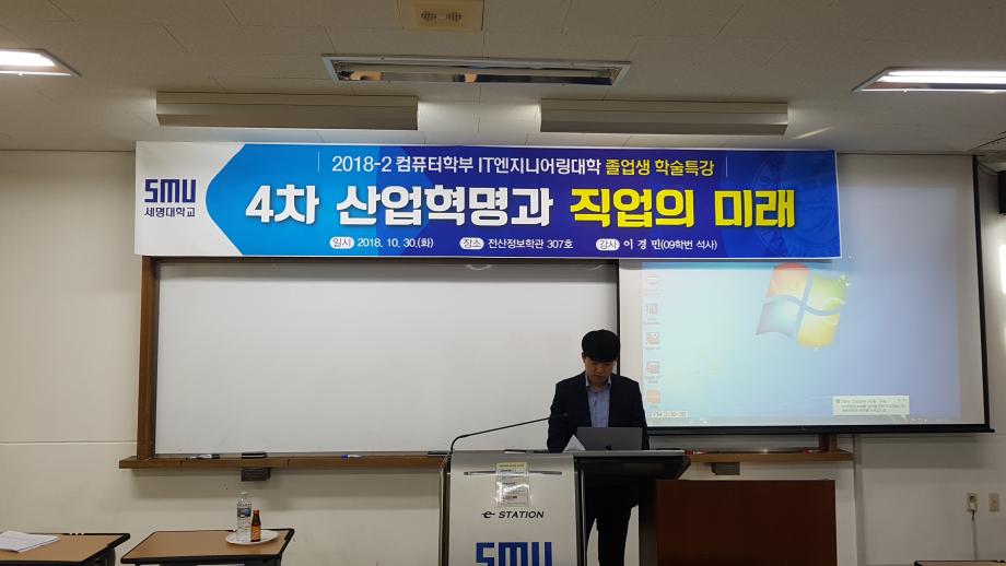본문 시작 홈으로 학부활동 학부소개 학부활동 교육과정 커뮤니티 학부생활 입학안내 홈페이지가이드 학부갤러리 학부행사 학생회 활동 전공 동아리 학부갤러리 학부갤러리 페이스북 트위터 프린트 181030 IT단과대학 졸업생 취업특강 컴퓨터학부 7407 2018-10-30 전산 307호에서 컴퓨터학부 졸업생 전자부품연구원(KETI) 지능형영상처리센터 연구원 이경민(09학번, 2016년도 졸업) '4차 산업혁명과 직업의 미래' 라는 주제로 강의를 하였습니다. 목록 다음 181101 제1회 IT엔지니어링대학 학술발표대회 다음 181127 컴퓨터실무체험 교과목 취업특강 담당부서 : 컴퓨터학부 담당자 : - 연락처 : 043-649-1272 최종수정일 : 2024-10-26 만족도조사 만족도 조사 이 페이지에서 제공하는 정보에 대하여 만족하시나요? 매우만족 만족 보통 불만족 매우불만족