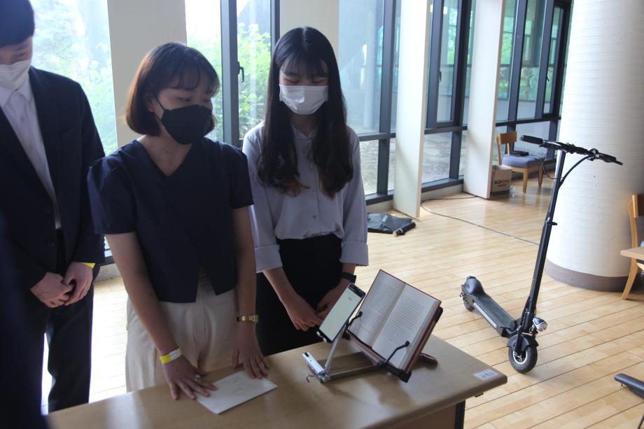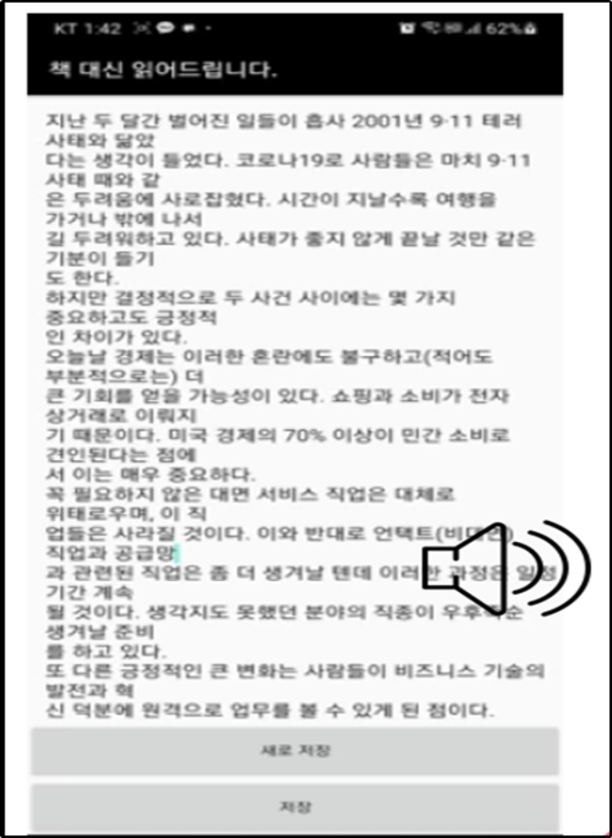 본문 시작 홈으로 SMIT 소식 SMIT 소개 SMIT 교육 SMIT 취업 SMIT 소식 SMIT 입학 홈페이지가이드 경진대회 공지사항 갤러리 경진대회 동아리 경진대회 페이스북 트위터 프린트 2021 캡스톤디자인 우수상 책 읽어드립니다 스마트IT학부 4310 2021-09-01 우수상 - 작품명 : 책 읽어드립니다. - 지도교수 : 권혁민 - 팀원 : 김형철, 강주원, 김진영, 공수현 시각장애인의 수는 많고 후천적 장애 발병률도 늘어가는 추세인데 독서를 하기 위한 충분한 인프라가 갖춰져 있지 않아 쉽게 접근 가능하도록 음성 인식과 음성 출력, 문자인식을 이용하여 어플을 제작하였다. 목록 이전2021 캡스톤디자인 장려상 Fitting go 다음 2021 캡스톤디자인 우수상 Arduino 기반 자동 높이 조절기능의 안면 체온 측정 장치 담당부서 : 스마트IT학부 담당자 : - 연락처 : 043-649-1275 최종수정일 : 2024-10-26 만족도조사 만족도 조사 이 페이지에서 제공하는 정보에 대하여 만족하시나요? 매우만족 만족 보통 불만족 매우불만족
