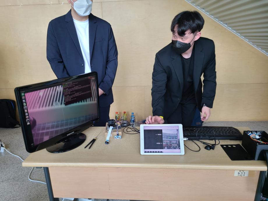 본문 시작 홈으로 SMIT 소식 SMIT 소개 SMIT 교육 SMIT 취업 SMIT 소식 SMIT 입학 홈페이지가이드 경진대회 공지사항 갤러리 경진대회 동아리 경진대회 페이스북 트위터 프린트 2021 캡스톤디자인 최우수상 아이백 스마트IT학부 5608 2021-09-01 최우수상 - 작품명 : 아이백 (Eye-Bag) - 지도교수 : 송미화 - 팀원 : 박민이, 구현모, 함석봉, 신봉재 시각장애인이 보행 시 가장 큰 불편을 겪는 횡단보도 보행에 초점을 맞춰 신호등을 인식해 안전하게 걸을 수 있도록 음성 인터페이스를 제공하는 가방 형태의 IoT 기기로 설계 및 제작하였다 목록 이전2021 캡스톤디자인 우수상 Smart On Collar (S.O.C) 이전2021.06.10 제22회 캡스톤디자인 전시회 담당부서 : 스마트IT학부 담당자 : - 연락처 : 043-649-1275 최종수정일 : 2024-10-26 만족도조사 만족도 조사 이 페이지에서 제공하는 정보에 대하여 만족하시나요? 매우만족 만족 보통 불만족 매우불만족