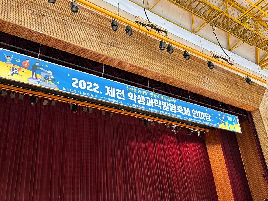 2022.11.19(토)에 제천 실내체육관에서 제천 초,중,고등학생들을 대상으로 시행된 '2022 발명의 날 축제'에 스마트IT학부 재학생4명이 참가 하였다.