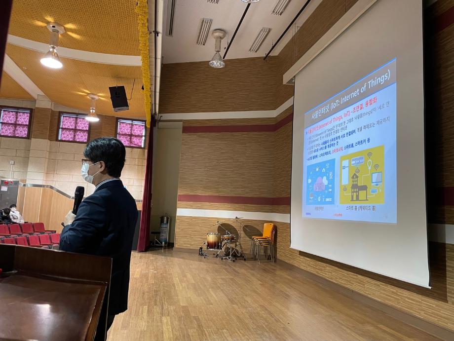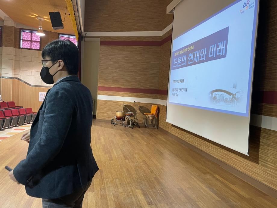 본문 시작 홈으로 SMIT 소식 SMIT 소개 SMIT 교육 SMIT 취업 SMIT 소식 SMIT 입학 홈페이지가이드 갤러리 공지사항 갤러리 경진대회 동아리 갤러리 페이스북 트위터 프린트 스마트IT학부 원주 대성고등학교 특강시행 스마트IT학부 4984 2022-12-09 2022년 12월 9일(금)에 원주 대성고등학교에서 3학년 학생 200여명을 대상으로 특강이 시행되었다. 스마트IT학부 조면균 교수님의 '생활속의 정보통신'과 한상익 교수님의 '드론의 현재와 미래'라는 주제로 이루어졌으며, 스마트IT학부의 전공과 관련된 내용이 소개되었다. 스마트IT학부 소개와 함께 정보통신, 드론, 인공지능에 대한 지식을 재미있게 풀어주면서 수능으로 지친 3학년 학생들과 유익한 시간을 보내는 계기가되었다. 목록 이전오선진 교수님 퇴임식 다음 스마트IT학부 2022학년도 2학기 전공학습동아리 수료 담당부서 : 스마트IT학부 담당자 : - 연락처 : 043-649-1275 최종수정일 : 2024-10-26 만족도조사 만족도 조사 이 페이지에서 제공하는 정보에 대하여 만족하시나요? 매우만족 만족 보통 불만족 매우불만족
