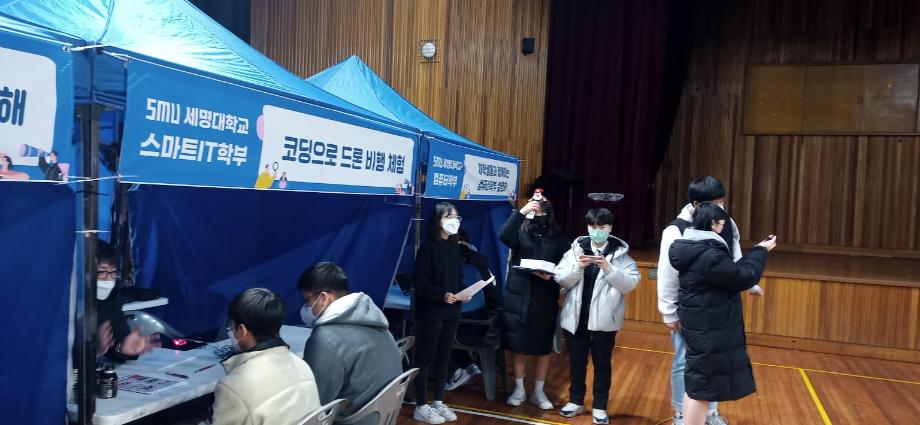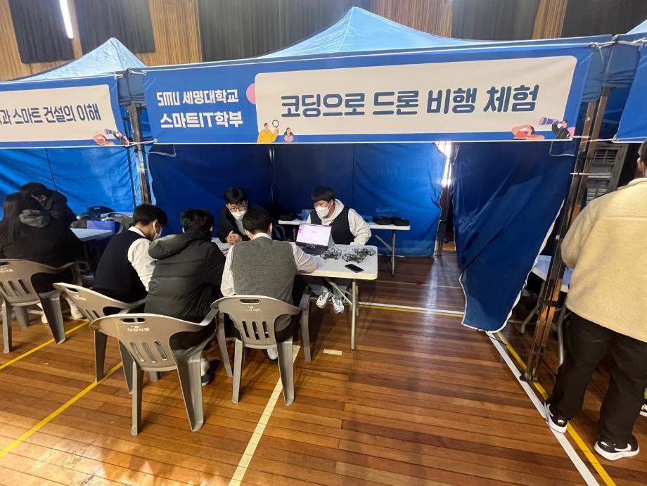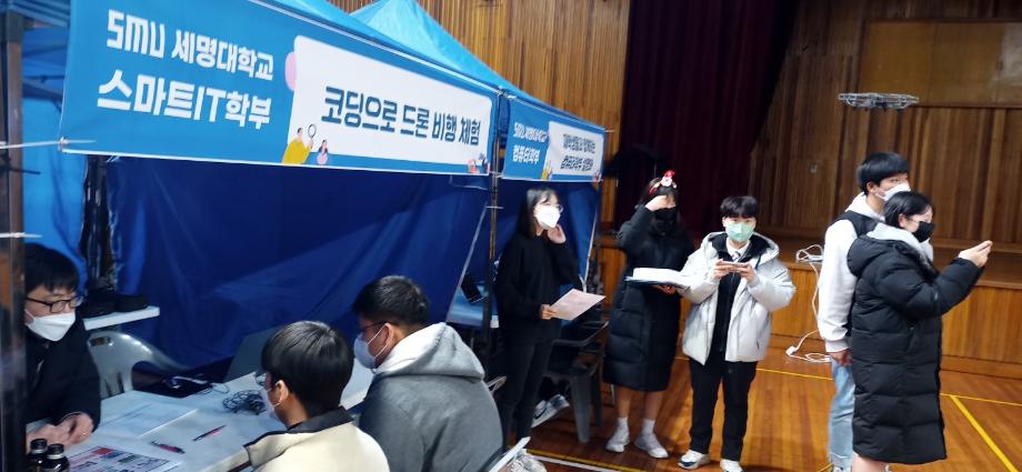 본문 시작 홈으로 SMIT 소식 SMIT 소개 SMIT 교육 SMIT 취업 SMIT 소식 SMIT 입학 홈페이지가이드 갤러리 공지사항 갤러리 경진대회 동아리 갤러리 페이스북 트위터 프린트 스마트IT학부 단양고 중등교육 연계프로그램 시행 스마트IT학부 5076 2022-12-22 스마트IT학부는 2022.12.22(목)에 단양고등학교 전공체험에 참가하였다. 한상익 교수님 주관으로 진행 되었으며, 스마트IT학부 재학생들이 보조 학생으로 참가하였다. 전공체험은 '코딩으로 드론 비행 체험'이라는 주제로 진행되었다. 단양고등학교 학생들에게 드론 조종법을 교육하고, 드론 비행 체험을 진행하게 하였다. 또한 스마트IT학부의 드론,자율주행차와 인공지능응용 전공에 대하여 소개하였다. 목록 이전스마트IT학부 2022학년도 2학기 전공학습동아리 수료 다음 스마트IT학부 정보처리기사 자격증 특강 시행 담당부서 : 스마트IT학부 담당자 : - 연락처 : 043-649-1275 최종수정일 : 2024-10-26 만족도조사 만족도 조사 이 페이지에서 제공하는 정보에 대하여 만족하시나요? 매우만족 만족 보통 불만족 매우불만족