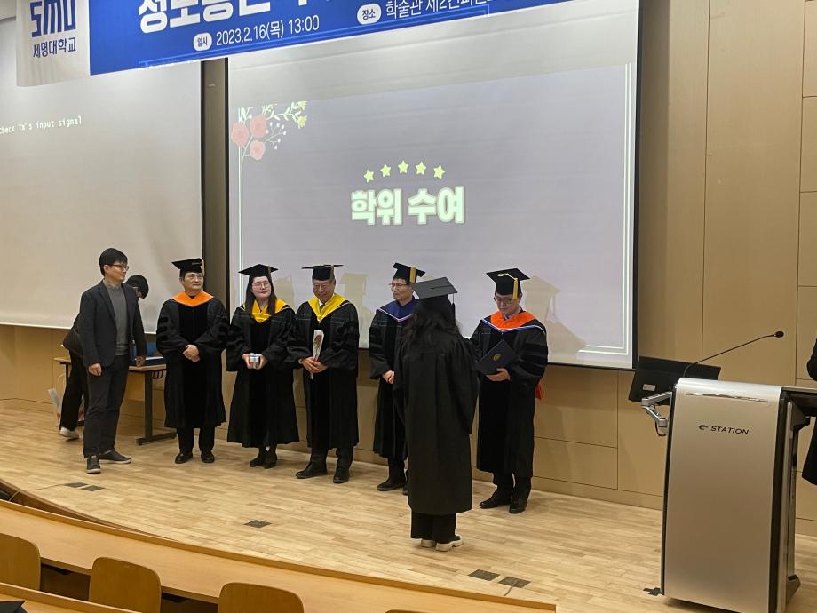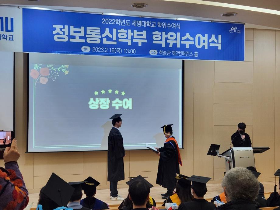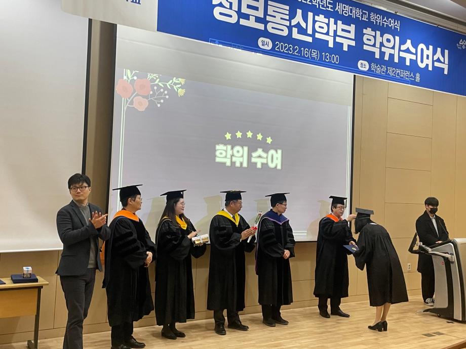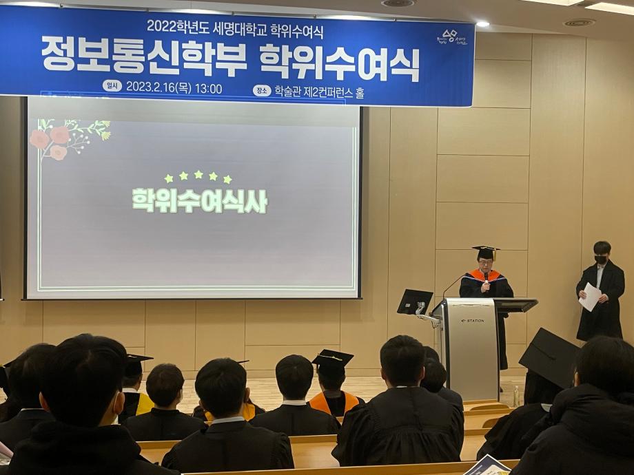 본문 시작 홈으로 SMIT 소식 SMIT 소개 SMIT 교육 SMIT 취업 SMIT 소식 SMIT 입학 홈페이지가이드 갤러리 공지사항 갤러리 경진대회 동아리 갤러리 페이스북 트위터 프린트 스마트IT학부 전기 학위수여식 스마트IT학부 4417 2023-02-16 스마트IT학부는 2023년 2월16일(목) 학술관 제2컨퍼런스 홀에서 전기 학위 수여식이 진행되었다. 학위 수여식은 교수님들의 학사행렬 입장으로 시작 되었으며. 학부장님의 학위수여식사, 학위 수여, 마무리 행사로 학사모 던지기로 진행되었다. 조면균 학부장님은 "드높은 자존감을 갖고 사회생활을 하며 미래 비전과 목표를 설정하고 성실한 사람이 되길 바란다" 라고 전했다. 목록 이전스마트IT학부 동계방학 특별활동 시행 다음 2023학년도 꿈 설계학기 1일차 담당부서 : 스마트IT학부 담당자 : - 연락처 : 043-649-1275 최종수정일 : 2024-10-26 만족도조사 만족도 조사 이 페이지에서 제공하는 정보에 대하여 만족하시나요? 매우만족 만족 보통 불만족 매우불만족