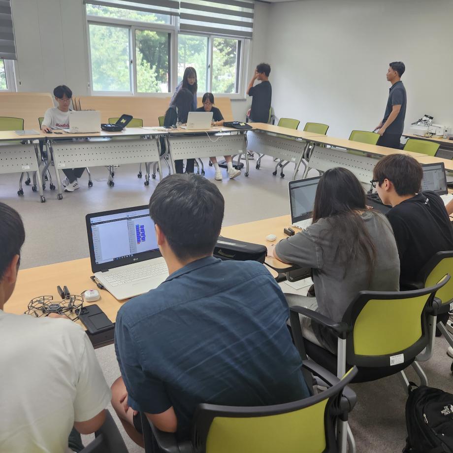 스마트IT학부 한상익 교수님의 지도하에 스마트 드론 조종 2팀. 스마트 드론 코딩 2팀으로 구성되어 방학동안 총 3번의 활동을 시행하게 된다.