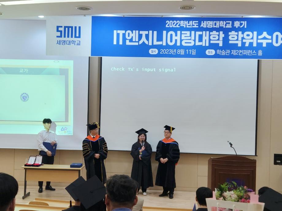 본문 시작 홈으로 SMIT 소식 SMIT 소개 SMIT 교육 SMIT 취업 SMIT 소식 SMIT 입학 홈페이지가이드 갤러리 공지사항 갤러리 경진대회 동아리 갤러리 페이스북 트위터 프린트 스마트IT학부 2022학년도 후기 학위수여식 스마트IT학부 7382 2023-08-11 스마트IT학부는 08월 11일(금) 학술관 102호에서 후기 학위수여식을 개최하였다. 후기 학위수여식은 IT엔지니어링 단과대학 주관으로 진행되었으며 스마트IT학부 6명의 졸업생이 학위를 수여받았다. 학위수여식에서 IT엔지니어링 단과대학 이완건 학장님과 총장님의 축사가 이루어졌다. 목록 이전스마트IT학부, "새온 자율주행 자동차 AI 미션 챌린지" 입상 다음 2023학년도 자기설계 해외배낭연수 담당부서 : 스마트IT학부 담당자 : - 연락처 : 043-649-1275 최종수정일 : 2024-10-26 만족도조사 만족도 조사 이 페이지에서 제공하는 정보에 대하여 만족하시나요? 매우만족 만족 보통 불만족 매우불만족
