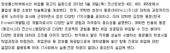 본문 시작 홈으로 SMIT 소식 SMIT 소개 SMIT 교육 SMIT 취업 SMIT 소식 SMIT 입학 홈페이지가이드 갤러리 공지사항 갤러리 경진대회 동아리 갤러리 페이스북 트위터 프린트 2013학년도 졸업작품전 개최 오선진 7855 2013-10-11 2013학년도 졸업작품전 개최 목록 이전졸업생 초청 학술특강 개최 다음 정보통신학부 연합 MT 개최 담당부서 : 스마트IT학부 담당자 : - 연락처 : 043-649-1275 최종수정일 : 2024-10-26 만족도조사 만족도 조사 이 페이지에서 제공하는 정보에 대하여 만족하시나요? 매우만족 만족 보통 불만족 매우불만족