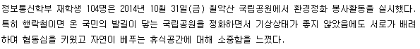 본문 시작 홈으로 SMIT 소식 SMIT 소개 SMIT 교육 SMIT 취업 SMIT 소식 SMIT 입학 홈페이지가이드 갤러리 공지사항 갤러리 경진대회 동아리 갤러리 페이스북 트위터 프린트 한방-의료ICT융합사업단 튜터링 오리엔테이션 진행 관리자 5589 2015-09-15 2015학년도 2학기 한방-의료ICT융합사업단 튜터링 오리엔테이션 진행 목록 이전정보통신학부, 월악산 국립공원 정화활동 실시 다음 한방-의료ICT 융합사업단, 졸업생 진로 및 취업간담회 실시 담당부서 : 스마트IT학부 담당자 : - 연락처 : 043-649-1275 최종수정일 : 2024-10-26 만족도조사 만족도 조사 이 페이지에서 제공하는 정보에 대하여 만족하시나요? 매우만족 만족 보통 불만족 매우불만족