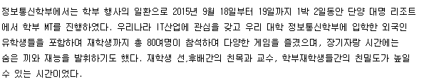 본문 시작 홈으로 SMIT 소식 SMIT 소개 SMIT 교육 SMIT 취업 SMIT 소식 SMIT 입학 홈페이지가이드 갤러리 공지사항 갤러리 경진대회 동아리 갤러리 페이스북 트위터 프린트 한방-의료ICT 융합사업단, 캡스톤 디자인 경진대회 실시 관리자 6315 2015-09-30 한방-의료ICT 융합사업단, 캡스톤 디자인 경진대회 실시 목록 이전정보통신학부, "글로벌 정통 MT" 개최 다음 한방-의료ICT 융합사업단, 융합전공 동아리 오리엔테이션 진행 담당부서 : 스마트IT학부 담당자 : - 연락처 : 043-649-1275 최종수정일 : 2024-10-26 만족도조사 만족도 조사 이 페이지에서 제공하는 정보에 대하여 만족하시나요? 매우만족 만족 보통 불만족 매우불만족