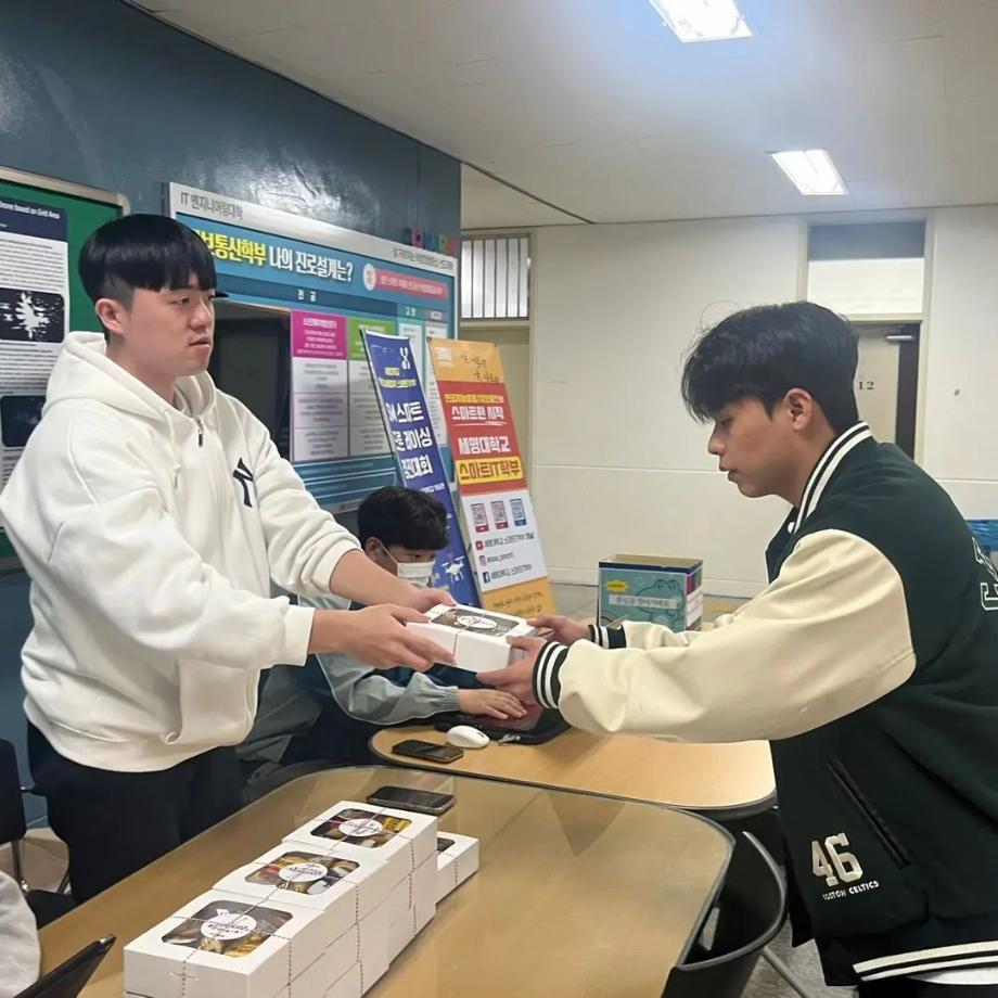 본문 시작 홈으로 SMIT 소식 SMIT 소개 SMIT 교육 SMIT 취업 SMIT 소식 SMIT 입학 홈페이지가이드 갤러리 공지사항 갤러리 경진대회 동아리 갤러리 페이스북 트위터 프린트 스마트IT학부 중간고사 간식나눔 이벤트👊 스마트IT학부 2697 2024-04-19 안녕하세요 세명대학교 스마트IT학부입니다😀 2024년 4월 17일, 18일에 걸쳐 신입생들을 위해 중간고사 응원 간식 나눔 행사를 진행하였습니다. 작은 선물이지만 열심히 준비한 만큼 맛있게 드셔주셔서 감사드리며, 머지않은 중간고사, 학우분들 화이팅하시고 노력한만큼 좋은 결과로 보답받으시길 응원합니다👊 목록 이전제9회 커뮤니티 페스티벌 및 제3회 벚꽃세봄 개최 안내 ! 다음 스마트IT학부 드론 동아리 활동 담당부서 : 스마트IT학부 담당자 : - 연락처 : 043-649-1275 최종수정일 : 2024-10-26 만족도조사 만족도 조사 이 페이지에서 제공하는 정보에 대하여 만족하시나요? 매우만족 만족 보통 불만족 매우불만족