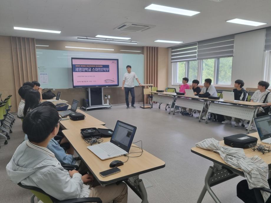 본문 시작 홈으로 SMIT 소식 SMIT 소개 SMIT 교육 SMIT 취업 SMIT 소식 SMIT 입학 홈페이지가이드 갤러리 공지사항 갤러리 경진대회 동아리 갤러리 페이스북 트위터 프린트 제천제일고 전공체험활동!! 스마트IT학부 2685 2024-06-03 안녕하세요 세명대학교 스마트IT학부입니다☺ 2024년 5월 30일에 제천제일고등학교 학생들의 전공 체험 활동을 진행하였습니다! 제일고등학교에서 온 학생들의 전공체험을 위해 코딩 및 드론 체험 진행했습니다. 잘 따라와준 학생들에게는 소정의 상품도 증정하였던 매우 열정적인 시간이었습니다!❤️🔥❤️🔥 함께한 친구들 모두 세명대에서 다시 만날 수 있길 바라요🤗 목록 이전2024 부트캠프 시행 다음 2024학년도 졸업작품 전시회 개최 담당부서 : 스마트IT학부 담당자 : - 연락처 : 043-649-1275 최종수정일 : 2024-10-26 만족도조사 만족도 조사 이 페이지에서 제공하는 정보에 대하여 만족하시나요? 매우만족 만족 보통 불만족 매우불만족