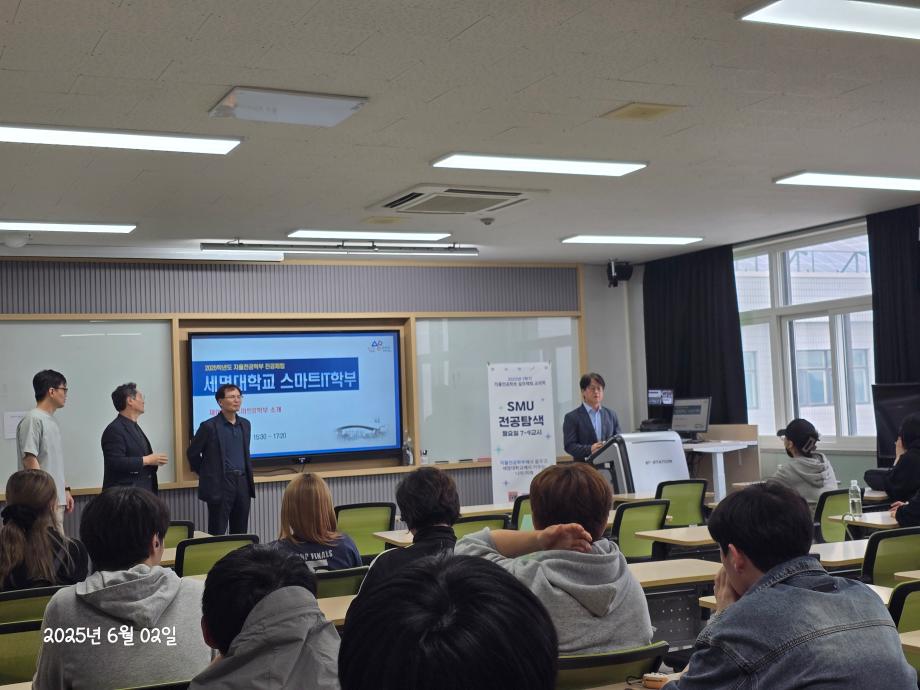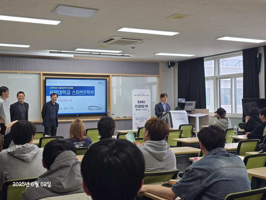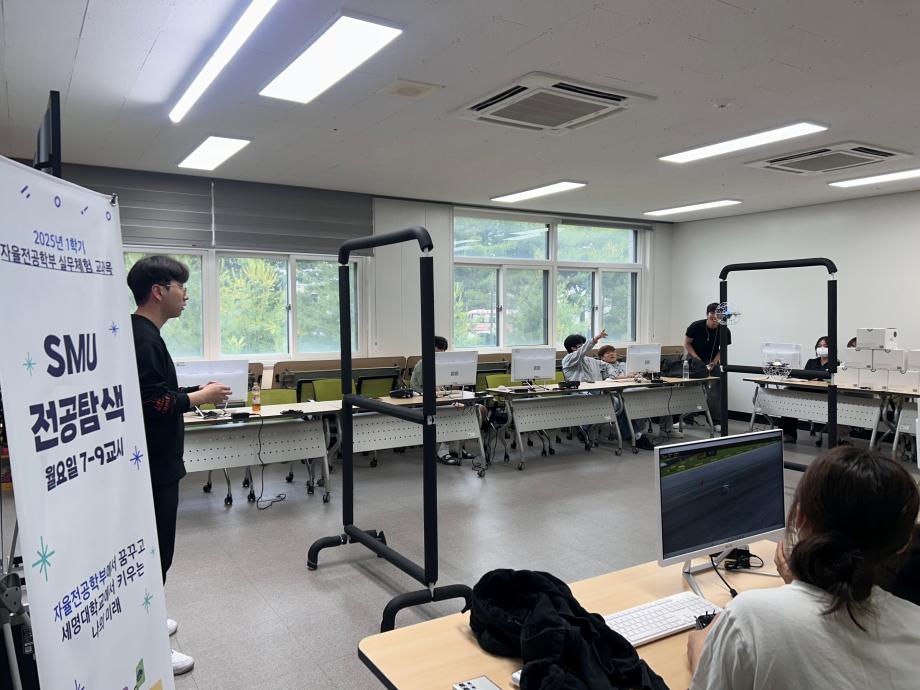 본문 시작 홈으로 SMIT 소식 SMIT 소개 SMIT 교육 SMIT 취업 SMIT 소식 SMIT 입학 홈페이지가이드 갤러리 공지사항 갤러리 경진대회 동아리 갤러리 페이스북 트위터 프린트 스마트IT학부 전공체험_자율전공학부 스마트IT학부 1929 2025-06-02 2025년 6월 2일 15:30부터 16:20까지 421호에서 자율전공학부 학생들과 스마트IT학부 교수님들과의 인사 시간을 가진 후 간단한 퀴즈를 통한 선물증정식을 진행하고, 406호와 408호에서 드론시뮬레이터 체험을 진행하였습니다. 자율전공학부 학생들이 전공을 선택에 도움이 되는 시간이었으면 좋겠습니다. 스마트IT학부에서 만나요~👍 목록 이전2025 스승의날 행사 다음 2025학년도 졸업작품 전시회 개최 담당부서 : 스마트IT학부 담당자 : - 연락처 : 043-649-1275 최종수정일 : 2024-10-26 만족도조사 만족도 조사 이 페이지에서 제공하는 정보에 대하여 만족하시나요? 매우만족 만족 보통 불만족 매우불만족