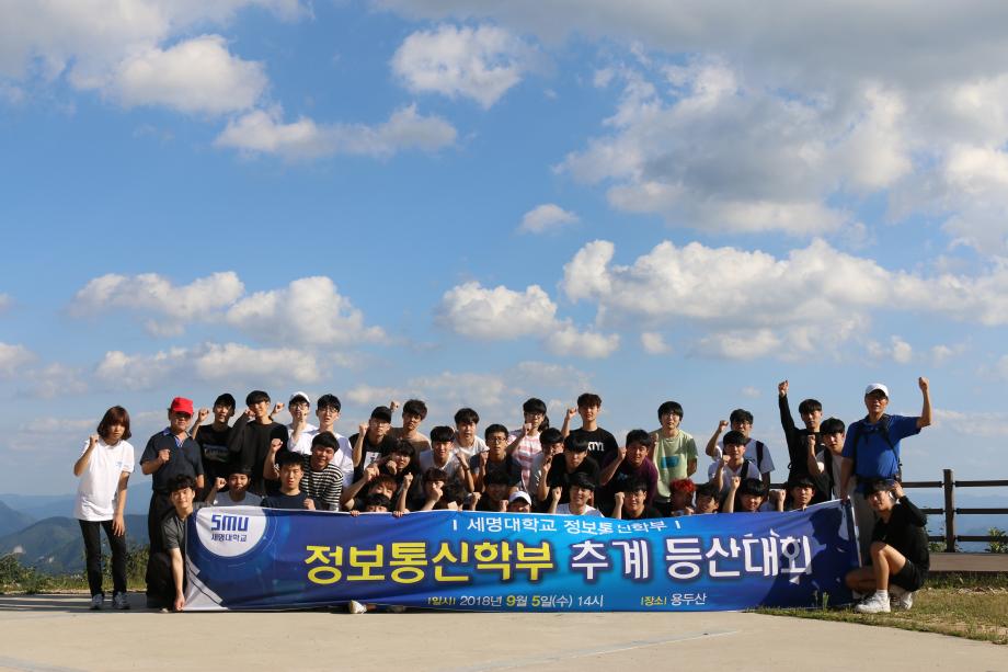 본문 시작 홈으로 SMIT 소식 SMIT 소개 SMIT 교육 SMIT 취업 SMIT 소식 SMIT 입학 홈페이지가이드 갤러리 공지사항 갤러리 경진대회 동아리 갤러리 페이스북 트위터 프린트 2018학년도 정보통신학부 용두산 등산 정보통신학부 7397 2018-09-27 정보통신학부에서는 2018년 09월 05일 18학번 신입생들을 대상으로 용두산 등산을 실시하였다. 이날 참가한 신입생들은 즐거운 마음으로 산행하면서 용두산의 아름다움을 체험할 수 있었다. 이번 용두산 등산을 계기로 신입생들의 유대감이 더욱 더 향상 되었고 몸과 마음을 단련할 수 있는 좋은 계기가 되었다. 목록 이전2017학년도 후기 학위수여식 개최 다음 2018학년도 IT엔지니어링대학 임직원 취업특강 담당부서 : 스마트IT학부 담당자 : - 연락처 : 043-649-1275 최종수정일 : 2024-10-26 만족도조사 만족도 조사 이 페이지에서 제공하는 정보에 대하여 만족하시나요? 매우만족 만족 보통 불만족 매우불만족