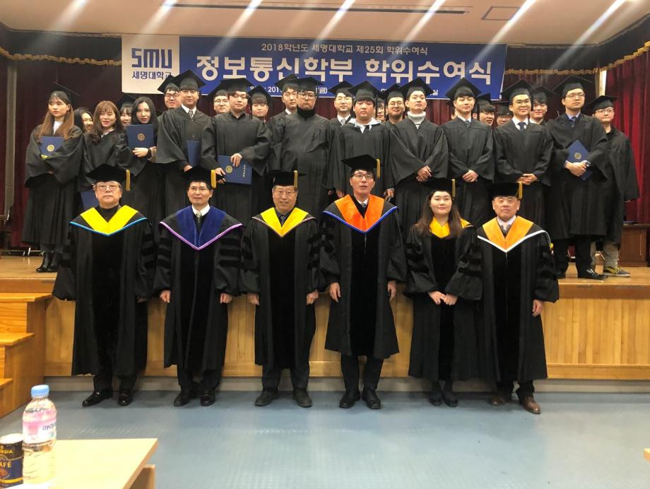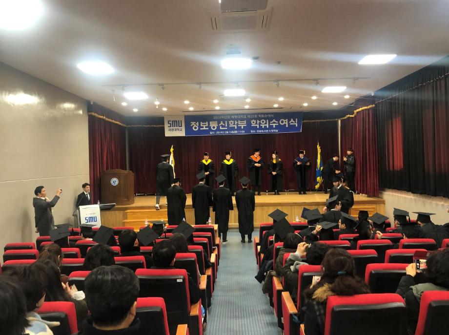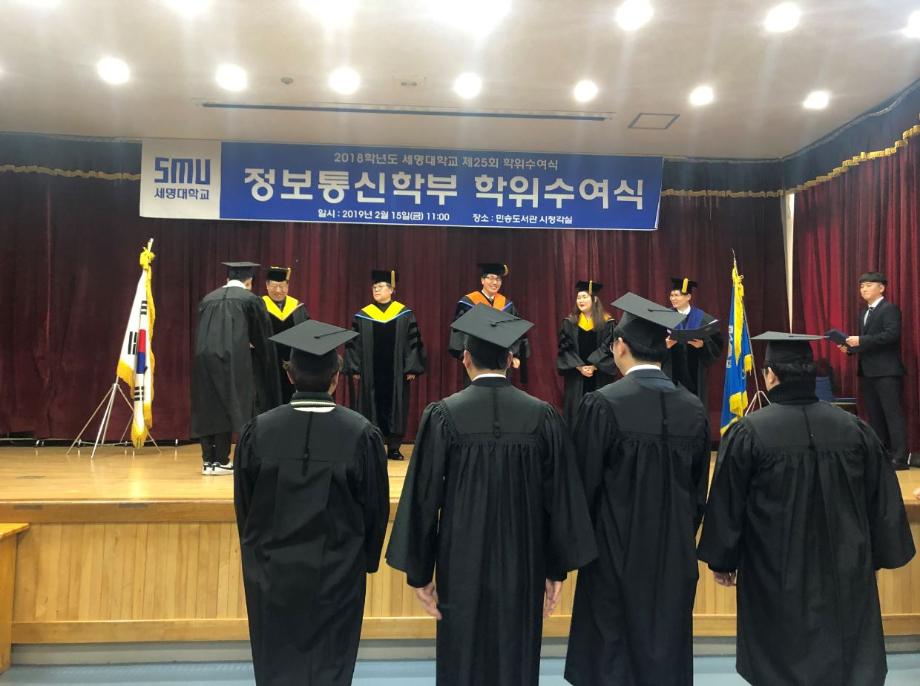 본문 시작 홈으로 SMIT 소식 SMIT 소개 SMIT 교육 SMIT 취업 SMIT 소식 SMIT 입학 홈페이지가이드 갤러리 공지사항 갤러리 경진대회 동아리 갤러리 페이스북 트위터 프린트 2018학년도 전기 학위수여식 정보통신학부 6478 2019-02-20 정보통신학부에서는 02월 15일(금) 민송도서관 시청각실에서 2018학년도 전기 학위수여식을 개최하였다. 정보통신학부에서 총 54명의 졸업생이 학위를 수여받았으며 학부수석 1명, 공로상 2명의 학생들이 상장을 받았다. 이용걸 총장은 축사에서 졸업생에게 “진정한 지성인으로 거듭난 졸업생들이 세상을 밝게 비추는 위세광명의 인재로 활약하게 될 날을 기대한다”며 “졸업생들의 앞날에 무궁한 축복과 발전이 있기를 기원한다”고 전했다. 목록 이전2018학년도 동계방학 중 정보처리기사 자격증 특강 진행 다음 2019학년도 정보통신학부 신입생 '꿈 설계학기' 담당부서 : 스마트IT학부 담당자 : - 연락처 : 043-649-1275 최종수정일 : 2024-10-26 만족도조사 만족도 조사 이 페이지에서 제공하는 정보에 대하여 만족하시나요? 매우만족 만족 보통 불만족 매우불만족
