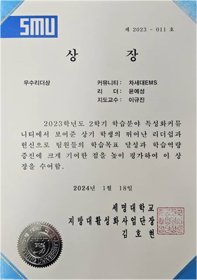 본문 시작 홈으로 커뮤니티 학과소개 교수소개 학과과정 커뮤니티 홈페이지가이드 포토갤러리 학과공지 채용정보 학과일정 포토갤러리 전공자료실 정보자료실 포토갤러리 페이스북 트위터 프린트 [전기, 전자공학과 수상] 2023학년도 특성화 커뮤니티 전기공학과 3635 2024-02-16 전기공학과 우수리더, 전기공학과 최우수 수상 전자공학과 우수 수상 목록 이전청소년 빅 콘서트 홍보부스 사진 다음 세명대학교 전기공학과 캡스톤디자인팀 ‘121호’, 대한전기학회 하계학술대회 스마트에너지경진대회 ‘금상’ 수상 담당부서 : 전기공학과 담당자 : - 연락처 : 043-649-1307 최종수정일 : 2024-10-26 만족도조사 만족도 조사 이 페이지에서 제공하는 정보에 대하여 만족하시나요? 매우만족 만족 보통 불만족 매우불만족