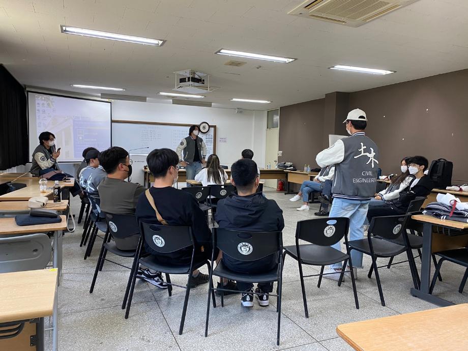 본문 시작 홈으로 커뮤니티 학과소개 교수소개 학과과정 커뮤니티 학과게시판 홈페이지가이드 포토갤러리 포토갤러리 전공자료실 학생회 동아리 포토갤러리 페이스북 트위터 프린트 2022학년도 신입생 성년의 날 토목공학과 3912 2022-05-18 지난 5월 16일, 토목공학과 재학생들은 2022학년도 신입생 학생들을 위해 성년의 날 행사를 진행하였습니다. 신입생 학생들을 위해 꽃다발과 선물을 준비하였고 학과 교수님들이 참여하셔서 함께 축하해주셨습니다. 신입생들의 소속감을 위해 과잠을 배부하였고 앞으로의 학교생활에 필요한 조언과 게임 진행을 통해 좀 더 친밀한 관계가 형성되었습니다. 행사 후에는 함께 점심식사를 하며 신입생들의 미래를 응원하는 자리가 되었습니다. 목록 이전학문간 융합을 위한 it엔지니어링대학 학술세미나 다음 2022학년도 스승의 날 담당부서 : 건설환경공학과 담당자 : - 연락처 : 043-649-1778 최종수정일 : 2024-10-26 만족도조사 만족도 조사 이 페이지에서 제공하는 정보에 대하여 만족하시나요? 매우만족 만족 보통 불만족 매우불만족