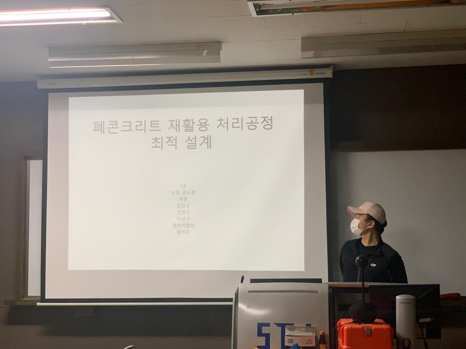 발표는 총 2팀이 참여를 하였고 학생들이 한 학기 동안 진행한 캡스톤디자인 과제에 대한 최종 결과를 발표하고 평가받는 시간이 되었습니다. 첫번째 팀은 국내 친환경 폐콘크리트의 재활용 처리공정에 대한 설계를 연구하였고 두번째 팀은 세명대학교 UI를 활용한 모형교량을 제작하여 각각의 성과에 대한 결과를 발표하였습니다. 발표회를 가지며 학생들의 아이디어가 돋보이는 시간이 되었습니다.