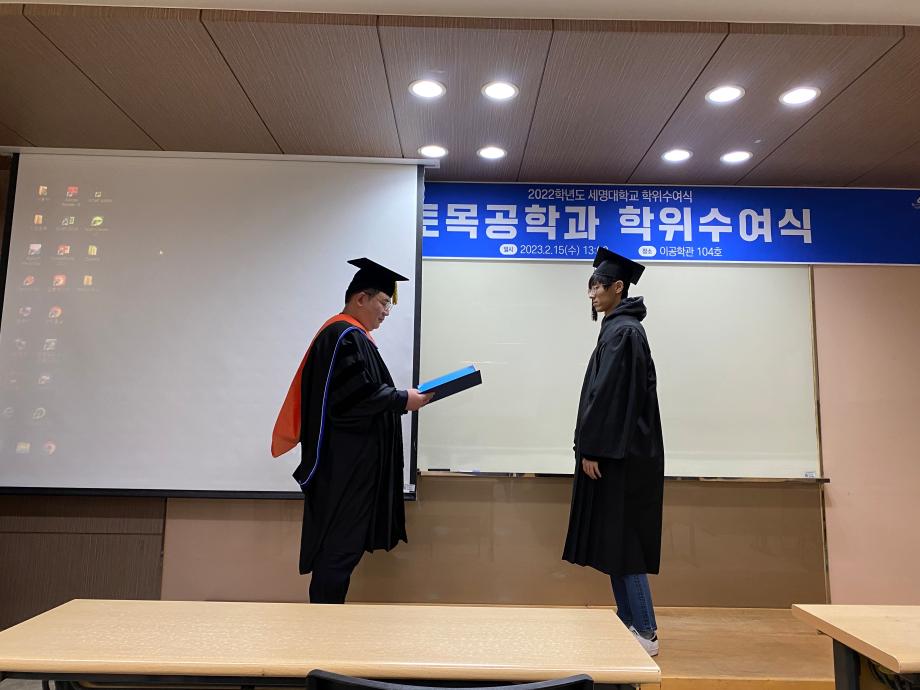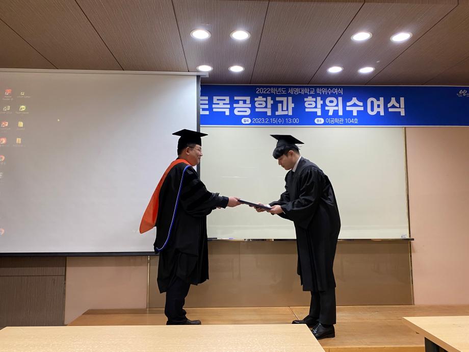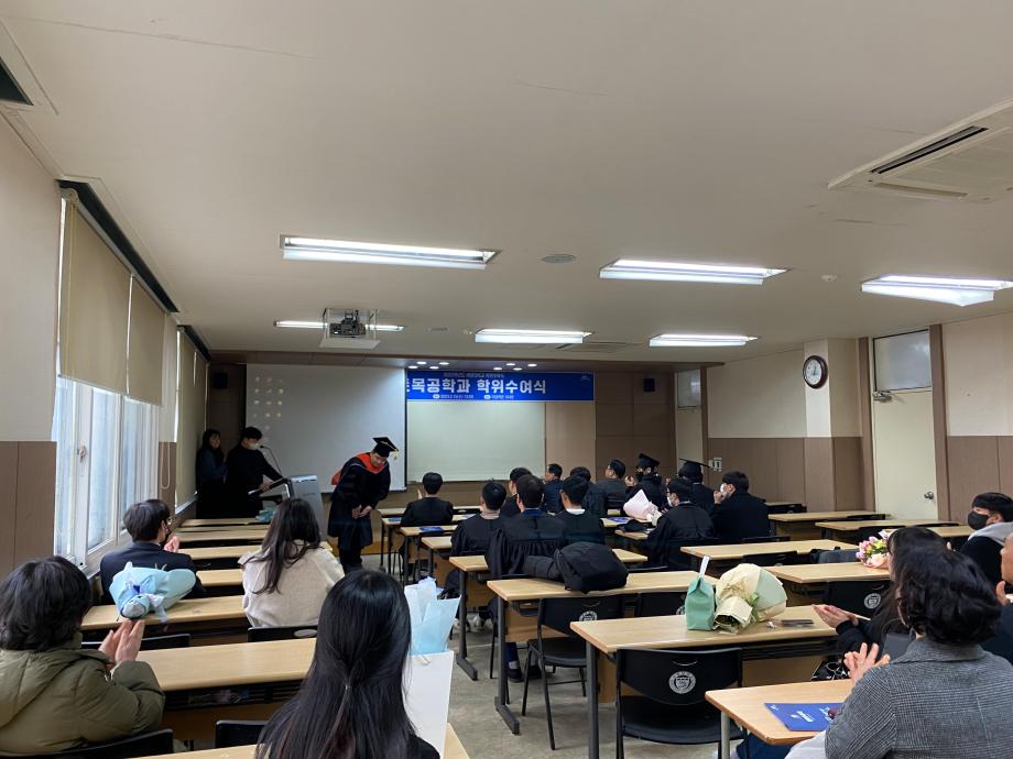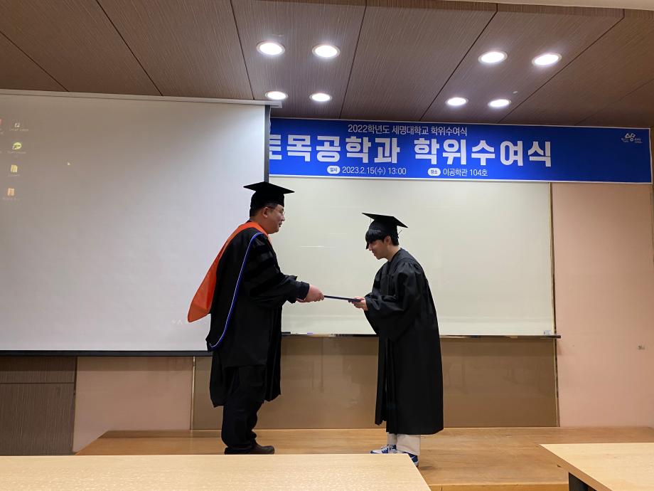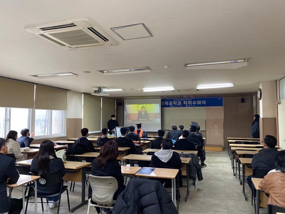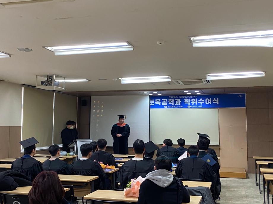 본문 시작 홈으로 커뮤니티 학과소개 교수소개 학과과정 커뮤니티 학과게시판 홈페이지가이드 포토갤러리 포토갤러리 전공자료실 학생회 동아리 포토갤러리 페이스북 트위터 프린트 2022학년도 전기 학위수여식 토목공학과 4665 2023-02-24 지난 2023년 2월 15일 수요일, 이공학관 104호에서 토목공학과 4학년 학생들의 졸업식이 진행되었습니다. 이번 29회 토목공학과 졸업식에는 총 26명이 학사학위를 수여받았으며, 대학원에서는 석사 3명, 박사 3명이 학위를 수여받았습니다. 목록 이전2022학년도 건설실무체험 학술특강 다음 2023학년도 신입생 환영회 담당부서 : 건설환경공학과 담당자 : - 연락처 : 043-649-1778 최종수정일 : 2024-10-26 만족도조사 만족도 조사 이 페이지에서 제공하는 정보에 대하여 만족하시나요? 매우만족 만족 보통 불만족 매우불만족