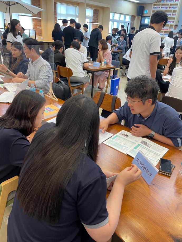 많은 세명고 학생들이 부스에 찾아와서 많은 정보를 얻어갔습니다. 세명고 학생들에게 보건안전학과 입시와 취업 전망 등에 대해 설명하는 유익한 시간이었습니다.