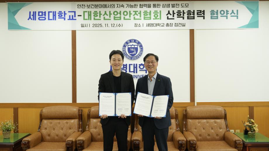 세명대학교(총장 권동현)와 대한산업안전협회(회장 임무송)는 산업안전 및 보건분야의 안전 문화 확산과 전문 인력 양성을 위한 산학협력 업무협약(MOU)를 체결하고, 지속 가능한 상생 발전을 도모하기 위한 협력을 약속했다.