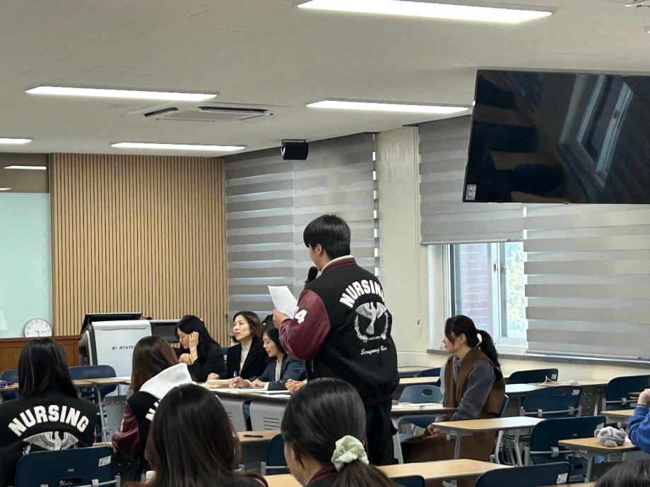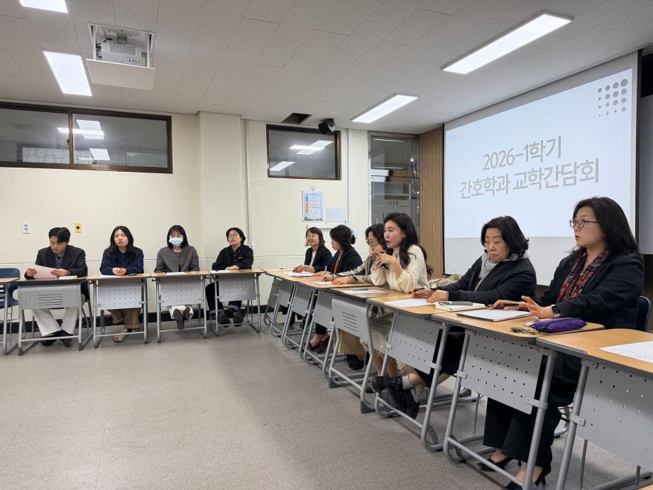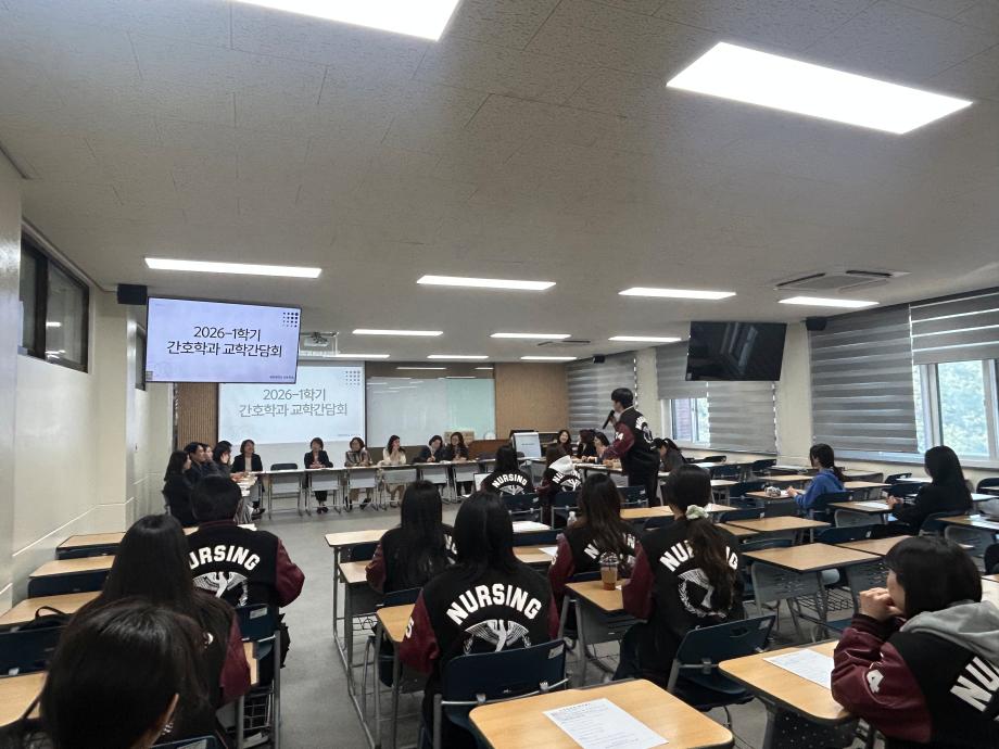 본문 시작 홈으로 커뮤니티 학과소개 교수소개 교육과정 학과소식 학과특성화 사업 커뮤니티 홈페이지가이드 포토갤러리 학사일정 포토갤러리 학생회 학과동아리 학과 취업정보 동창회 학과운영개선의견 발전기금 포토갤러리 페이스북 트위터 프린트 간호학과, 2026학년도 1학기 교학간담회 개최 간호학과 193 2026-04-09 간호학과는 4월 7일(화) 재학생, 교수진 및 행정실이 함께 참여하는 교학간담회를 개최하였다. 이번 간담회는 학습 환경 및 수업 운영, 학과 생활 전반에 대한 다양한 의견을 공유하고 소통하기 위해 마련되었다. 참석자들은 서로의 의견을 경청하며 학과 발전과 교육의 질 향상을 위한 방향에 대해 논의하는 시간을 가졌다. 간호학과는 앞으로도 구성원 간의 지속적인 소통을 통해 보다 나은 교육 환경을 조성해 나갈 예정이다. 목록 이전🧠세명대학교 간호학과, 3학년 대상 ‘치매파트너 교육’ 실시 담당부서 : 간호학과 담당자 : - 연락처 : 043-649-1357 최종수정일 : 2024-10-26 만족도조사 만족도 조사 이 페이지에서 제공하는 정보에 대하여 만족하시나요? 매우만족 만족 보통 불만족 매우불만족