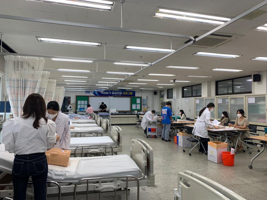 본문 시작 홈으로 커뮤니티 학과소개 교수소개 교육과정 학과소식 학과특성화 사업 커뮤니티 홈페이지가이드 포토갤러리 학사일정 포토갤러리 학생회 학과동아리 학과 취업정보 동창회 학과운영개선의견 발전기금 포토갤러리 페이스북 트위터 프린트 2022학년도 핵심술기 졸업인증 프로그램 간호학과 4051 2022-08-29 2022학년도 핵심술기 졸업인증 프로그램 - 일시 : 2022.08.23.(화) 09:00 ~ 17:00 - 장소 : 이학관 407호, 414호, 416호 - 대상 : 간호학과 4학년 졸업예정자 104명 간호학과 졸업생을 초청하여 모교방문의 날 행사 및 4학년 졸업예정자를 대상으로 핵심술기 졸업인증 프로그램을 진행하였다. 목록 이전2021학년도 기초 실습역량 강화 프로그램(카데바 실습) 다음 2022학년도 국내·외 보건의료정책변화 특강 담당부서 : 간호학과 담당자 : - 연락처 : 043-649-1357 최종수정일 : 2024-10-26 만족도조사 만족도 조사 이 페이지에서 제공하는 정보에 대하여 만족하시나요? 매우만족 만족 보통 불만족 매우불만족