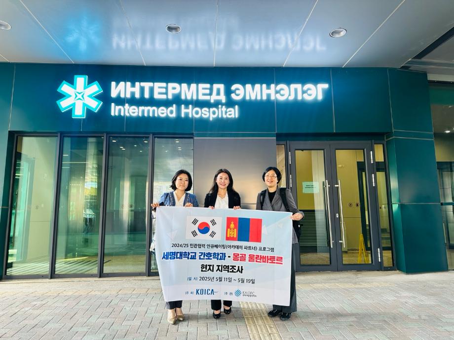 세명대학교 간호학과(참여 박다혜·황선아·서예지 교수)가 한국국제협력단(KOICA)이 주최하고 국제개발협력학회(KAIDEC)가 주관하는 2024/2025 KOICA 민관협력 인큐베이팅 프로그램(아카데미 파트너)의 지원기관으로 선정되어, 2025년 5월 11일~19일 몽골 울란바토르 현지 지역조사를 성공적으로 진행하였다.