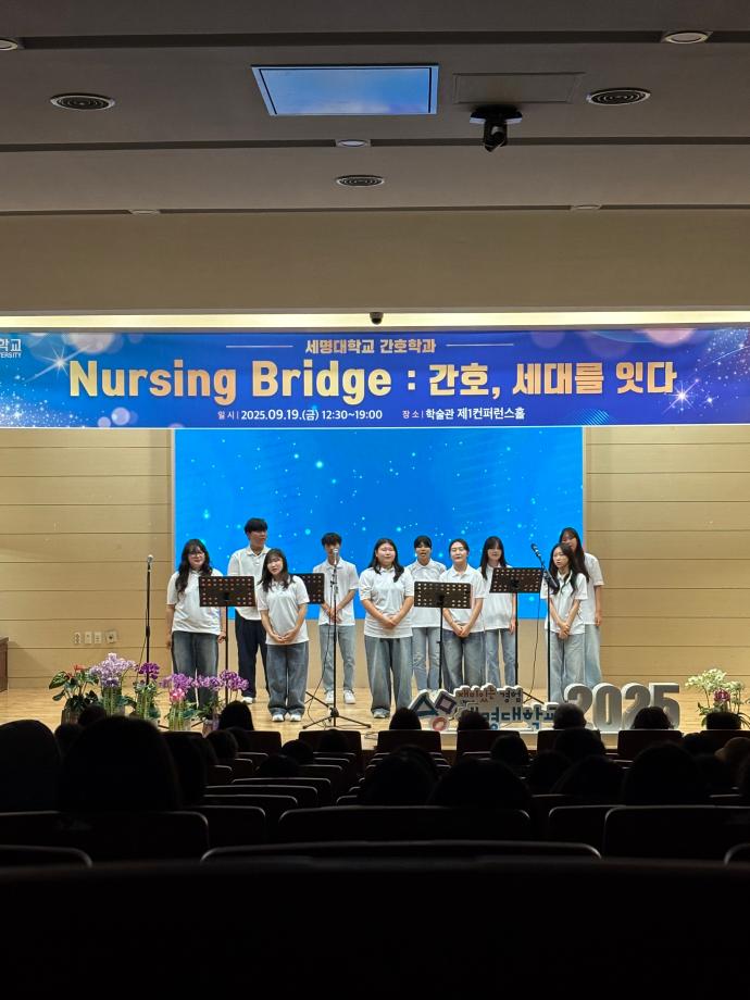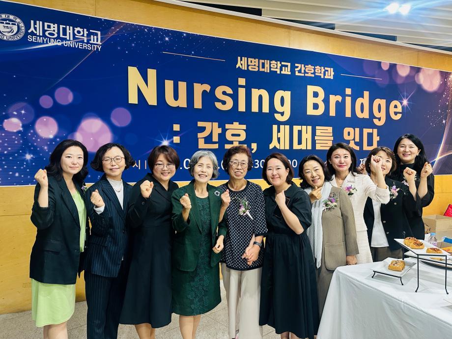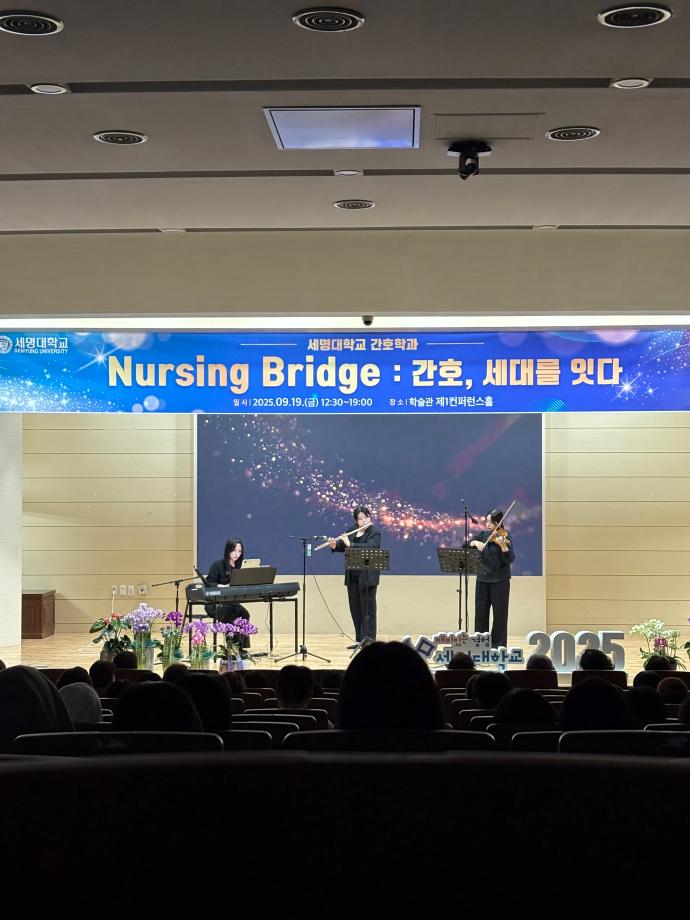 본문 시작 홈으로 커뮤니티 학과소개 교수소개 교육과정 학과소식 학과특성화 사업 커뮤니티 홈페이지가이드 포토갤러리 학사일정 포토갤러리 학생회 학과동아리 학과 취업정보 동창회 학과운영개선의견 발전기금 포토갤러리 페이스북 트위터 프린트 🎉 세명대학교 간호학과 30주년 기념행사 🎉 Nursing Bridge: 간호, 세대를 잇다 간호학과 1933 2025-09-24 이번 행사에는 신경림 대한간호협회장님의 기조강연과 정승교 명예교수님의 특별강연이 있었습니다. 권동현 총장님을 비롯한 각 부처 처장님, 명지병원 병원장님, 간호부장님 등 여러 기관에서도 직접 참여해주시고, 축하영상 및 화환을 보내주시어 자리가 더욱 빛났습니다. 1기 졸업생부터 현 재학생까지 500여명이 한뜻으로 모여 뜻깊은 시간을 보냈습니다. 과거와 현재, 그리고 미래의 간호를 잇는 ‘Nursing Bridge’ 그 감동의 순간들입니다. 목록 이전🎓 [2025학년도 핵심간호술 졸업인증제 – 선배님들의 모교 방문] 다음 2025년 2학기 간호학과 교학간담회 담당부서 : 간호학과 담당자 : - 연락처 : 043-649-1357 최종수정일 : 2024-10-26 만족도조사 만족도 조사 이 페이지에서 제공하는 정보에 대하여 만족하시나요? 매우만족 만족 보통 불만족 매우불만족