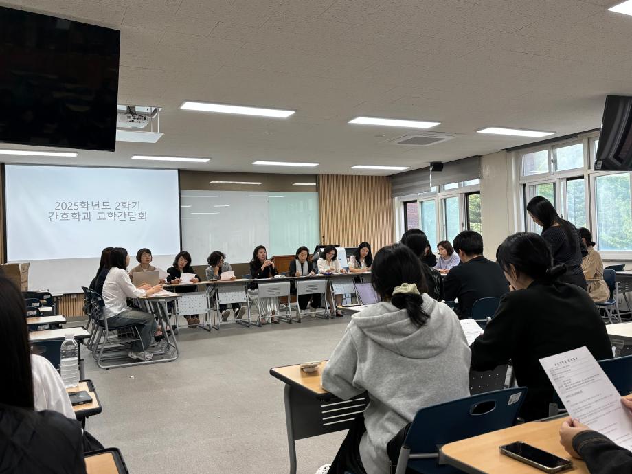 본문 시작 홈으로 커뮤니티 학과소개 교수소개 교육과정 학과소식 학과특성화 사업 커뮤니티 홈페이지가이드 포토갤러리 학사일정 포토갤러리 학생회 학과동아리 학과 취업정보 동창회 학과운영개선의견 발전기금 포토갤러리 페이스북 트위터 프린트 2025년 2학기 간호학과 교학간담회 간호학과 1891 2025-09-24 세명대학교 간호학과에서는 교수님들, 학회(학생회), 행정실이 한자리에 모여 학과 운영에 대한 다양한 의견을 나누는 '간호학과 교학간담회'를 진행했습니다. 학생들의 목소리를 직접 듣고, 교수님과 행정실이 함께 고민하며 더 나은 교육환경과 학과 문화를 만들기 위한 뜻깊은 소통의 시간이었습니다.✨ 앞으로도 ‘함께 만들어가는 간호학과’를 위해 소통과 협력을 이어가겠습니다! 목록 이전🎉 세명대학교 간호학과 30주년 기념행사 🎉 Nursing Bridge: 간호, 세대를 잇다 다음 의림여중 전공체험 담당부서 : 간호학과 담당자 : - 연락처 : 043-649-1357 최종수정일 : 2024-10-26 만족도조사 만족도 조사 이 페이지에서 제공하는 정보에 대하여 만족하시나요? 매우만족 만족 보통 불만족 매우불만족