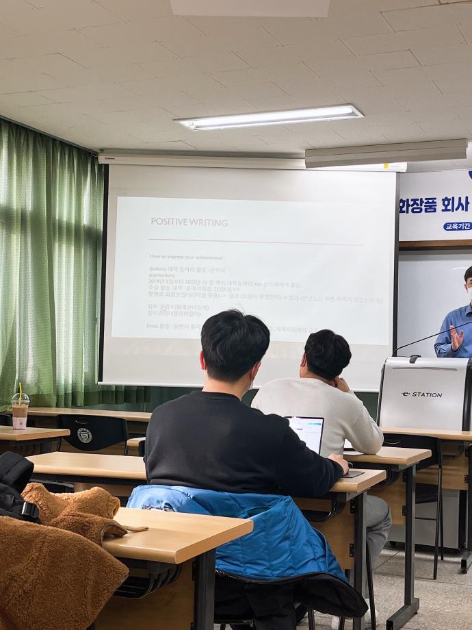 본문 시작 홈으로 커뮤니티 학과소개 학과과정 대학원 커뮤니티 연구동아리 홈페이지가이드 포토갤러리 학과공지 채용정보 학과일정 포토갤러리 유튜브 인스타그램 취업현황 학생회 조직도 졸업생 숏터뷰 포토갤러리 페이스북 트위터 프린트 [취업특강] 화장품 회사 취업 대비 carrer development 과정 화장품뷰티학부 2873 2022-03-17 2022.03.16(수) 에 화장품뷰티학부 3,4학년 학생들 대상으로 취업특강이 진행되었습니다. 특강 내용은 화장품 회사 취업 대비 carrer development 과정이며 학생들이 직접 쓴 자기소개서와 이력서를 가지고 특강에 참여하였습니다:) 목록 이전피부미용사 자격증 취득 특강(2월) 다음 [취업특강] 면접대비 이미지 메이킹 특강 담당부서 : 바이오코스메틱학과 담당자 : - 연락처 : 043-649-1638 최종수정일 : 2024-10-26 만족도조사 만족도 조사 이 페이지에서 제공하는 정보에 대하여 만족하시나요? 매우만족 만족 보통 불만족 매우불만족