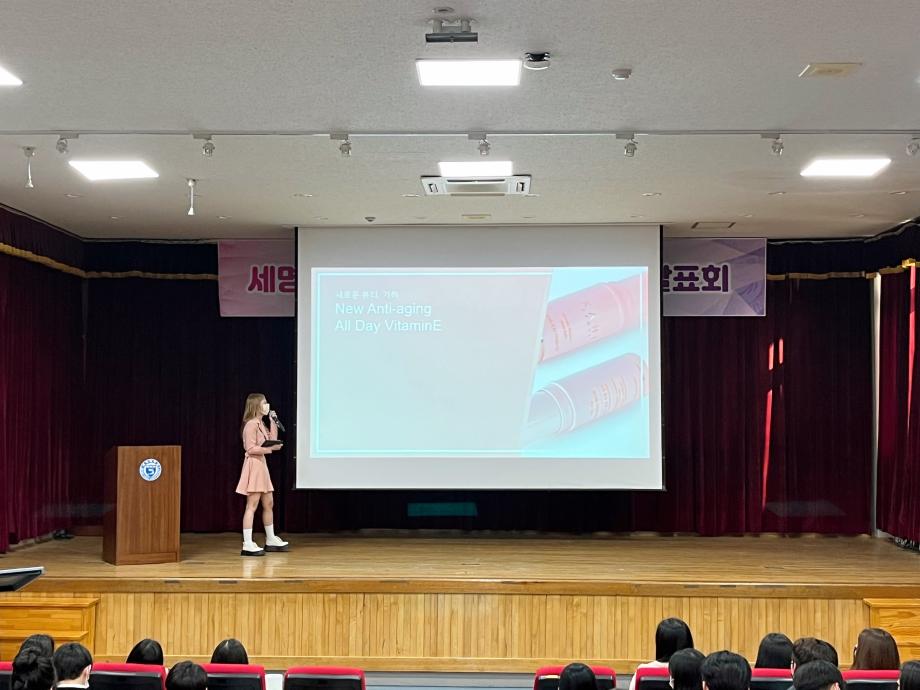 조색+충전형 립스틱 소개, MZ세대가 열광할 기초화장품 및 색조화장품 소개 등 다양한 주제를 바탕으로 학생들이 각자 제품을 기획하고 마케팅까지 해보며 발표하는 시간을 가졌답니다 :)