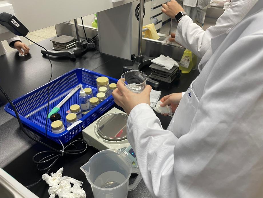 3. 200ml 비이커에 수상(Di-water, 1,3BG, EDTA-2Na, Nacl)을 계량한다.