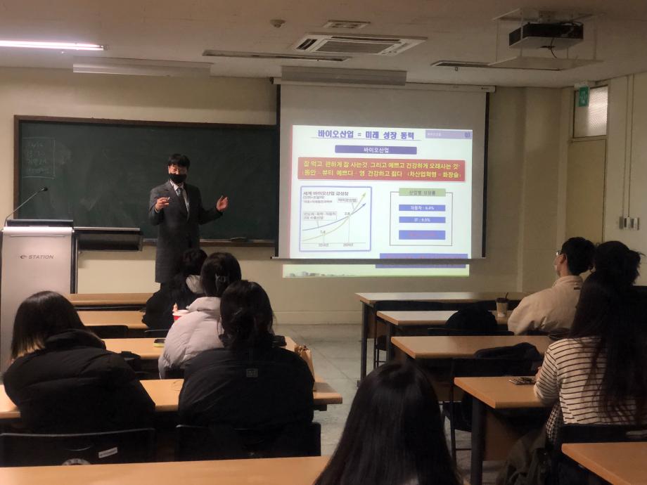 본문 시작 홈으로 커뮤니티 학과소개 학과과정 대학원 커뮤니티 연구동아리 홈페이지가이드 포토갤러리 학과공지 채용정보 학과일정 포토갤러리 유튜브 인스타그램 취업현황 학생회 조직도 졸업생 숏터뷰 포토갤러리 페이스북 트위터 프린트 [화장품산업실무체험] 김수진박사 학술특강 화장품뷰티학부 3658 2022-12-12 안녕하세요 화장품학과입니다! 우리학과 [화장품산업실무체험] 강의에서 학술특강을 진행하였는데요 :) '인트론바이오'에서 근무중이신 김수진 박사님께서 진행해 주셨습니다 ~ 바이오 시장에 대해 전반적으로 이해하는 시간을 가지고, 시장지향적인 마케팅적 사고로 전환하여 화장품분야를 다양한 관점에서 이해하는 시간을 가졌습니다 학생들에게 창의적으로 사고할수 있는 방법에 대해 강의해 주신 김수진 박사님께 감사의 말씀 전합니다 :) 목록 이전화장품학과 : 2022 캡스톤디자인 수상하다! 다음 2022년도 2학기 기말고사 시행 담당부서 : 바이오코스메틱학과 담당자 : - 연락처 : 043-649-1638 최종수정일 : 2024-10-26 만족도조사 만족도 조사 이 페이지에서 제공하는 정보에 대하여 만족하시나요? 매우만족 만족 보통 불만족 매우불만족