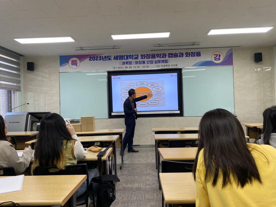 본문 시작 홈으로 커뮤니티 학과소개 학과과정 대학원 커뮤니티 연구동아리 홈페이지가이드 포토갤러리 학과공지 채용정보 학과일정 포토갤러리 유튜브 인스타그램 취업현황 학생회 조직도 졸업생 숏터뷰 포토갤러리 페이스북 트위터 프린트 2023학년도 2학기 화장품 산업 실무체험 제4회 전문가 초청 특강 화장품뷰티학부 2905 2023-10-27 2023학년도 2학기 화장품 산업 실무체험 교과목 전문가를 초청하여 4회차로 특강을 진행하였습니다. 2023년 10월 25일 수요일에 화장품과 캡슐이라는 주제로 특강을 진행하였고 특강을 맡아주신 강사님께서는 현재 (주) 에이티랩 대표이사로 계시는 김영택 대표님입니다. 목록 이전S-BOOT 전문가 초청 취업코칭 특강 다음 2023학년도 화장품산업실무체험 제5회 특강 담당부서 : 바이오코스메틱학과 담당자 : - 연락처 : 043-649-1638 최종수정일 : 2024-10-26 만족도조사 만족도 조사 이 페이지에서 제공하는 정보에 대하여 만족하시나요? 매우만족 만족 보통 불만족 매우불만족