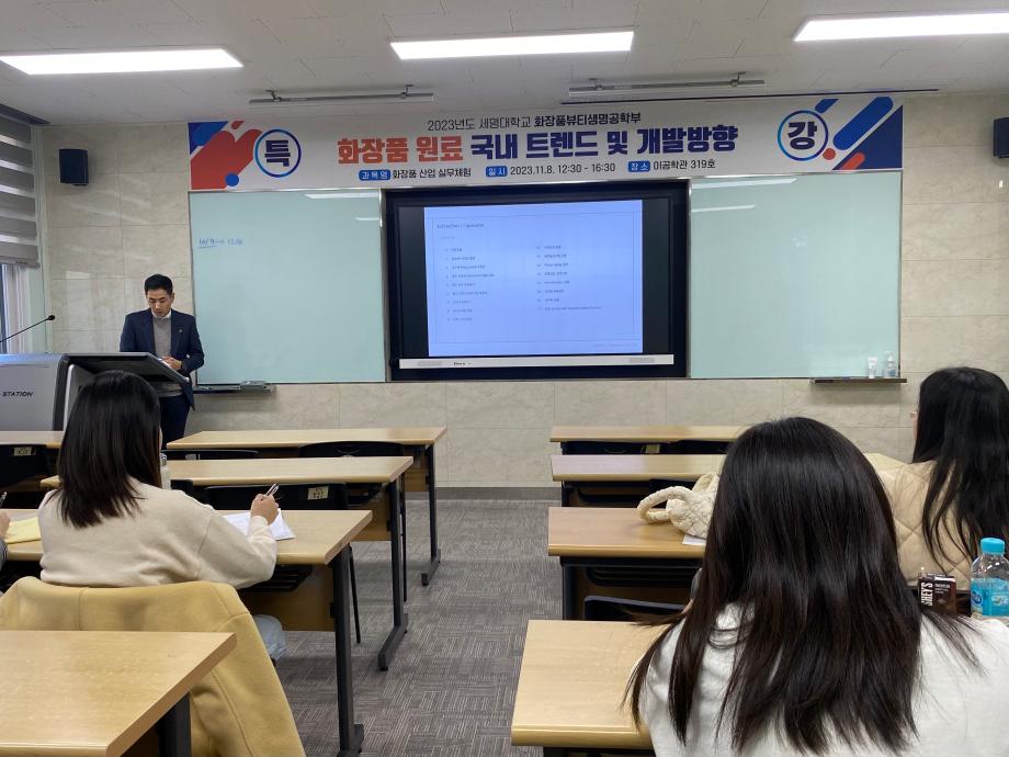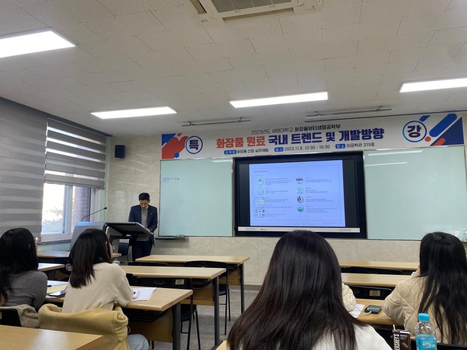 본문 시작 홈으로 커뮤니티 학과소개 학과과정 대학원 커뮤니티 연구동아리 홈페이지가이드 포토갤러리 학과공지 채용정보 학과일정 포토갤러리 유튜브 인스타그램 취업현황 학생회 조직도 졸업생 숏터뷰 포토갤러리 페이스북 트위터 프린트 2023학년도 화장품산업실무체험 제5회 특강 화장품뷰티학부 2783 2023-11-09 세상코스메틱(Dr.G) 박준우 R&D 본부장님께서 진행하신 <화장품 원료 국내 트렌드 및 개발방향> 에 대하여 강의해주셨습니다. 목록 이전2023학년도 2학기 화장품 산업 실무체험 제4회 전문가 초청 특강 다음 S-BOOT 2차 전문가 초빙 취업코칭 특강 담당부서 : 바이오코스메틱학과 담당자 : - 연락처 : 043-649-1638 최종수정일 : 2024-10-26 만족도조사 만족도 조사 이 페이지에서 제공하는 정보에 대하여 만족하시나요? 매우만족 만족 보통 불만족 매우불만족