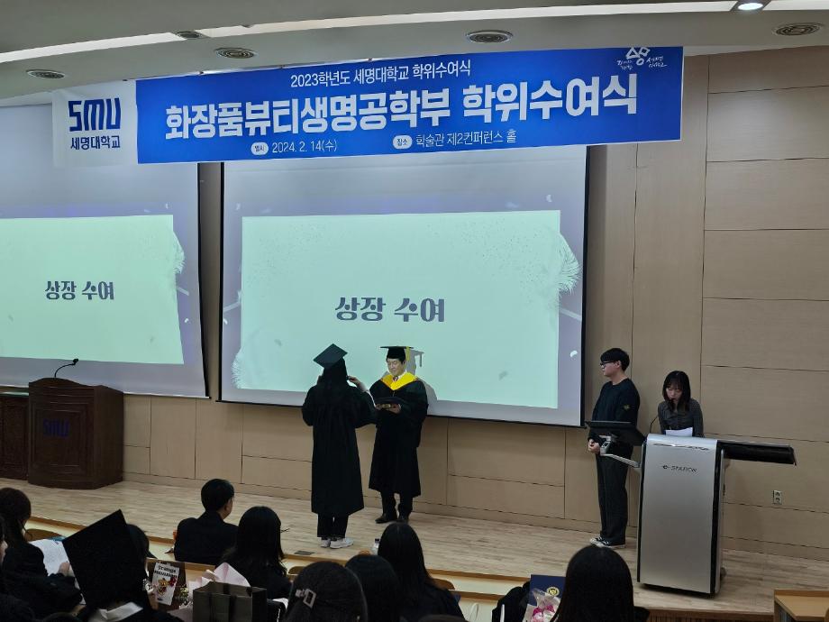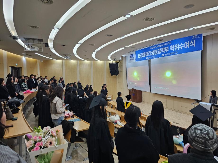 본문 시작 홈으로 커뮤니티 학과소개 학과과정 대학원 커뮤니티 연구동아리 홈페이지가이드 포토갤러리 학과공지 채용정보 학과일정 포토갤러리 유튜브 인스타그램 취업현황 학생회 조직도 졸업생 숏터뷰 포토갤러리 페이스북 트위터 프린트 2023전기 학위수여식 바이오코스메틱학과 2243 2024-02-15 2024.02.14 11시 학술관 제 2컨퍼런스 홀에서 2023전기 학위수여식을 진행하였습니다. 졸업하신 학생분들의 앞날을 기원하겠습니다. 목록 이전바이오코스메틱학과 취업대비 에센셜오일(향료) 전문가 양상 교육특강 다음 2024학년도 바이오코스메틱학과 꿈설계학기 담당부서 : 바이오코스메틱학과 담당자 : - 연락처 : 043-649-1638 최종수정일 : 2024-10-26 만족도조사 만족도 조사 이 페이지에서 제공하는 정보에 대하여 만족하시나요? 매우만족 만족 보통 불만족 매우불만족