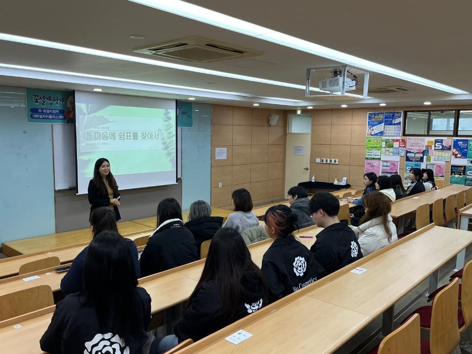 본문 시작 홈으로 커뮤니티 학과소개 학과과정 대학원 커뮤니티 연구동아리 홈페이지가이드 포토갤러리 학과공지 채용정보 학과일정 포토갤러리 유튜브 인스타그램 취업현황 학생회 조직도 졸업생 숏터뷰 포토갤러리 페이스북 트위터 프린트 2024학년도 바이오코스메틱학과 꿈설계학기 바이오코스메틱학과 2617 2024-02-22 세명대학교에서 2024년 2월 19일부터 21일까지 꿈설계학기를 진행하였습니다. 꿈설계학기동안 신입생들과 선후배 교수님과 소통하고 진로를 설계하며 전공에 관련한 화장품임상센터에서의 견학을 가지면서 학교를 알아가고 새로운 학우들과 서로 소통하는 시간을 가질 수 있었습니다. 목록 이전비교과프로그램 맞춤형화장품 오픈랩 행사 다음 2024학년도 보건바이오대학배 체육대회 담당부서 : 바이오코스메틱학과 담당자 : - 연락처 : 043-649-1638 최종수정일 : 2024-10-26 만족도조사 만족도 조사 이 페이지에서 제공하는 정보에 대하여 만족하시나요? 매우만족 만족 보통 불만족 매우불만족