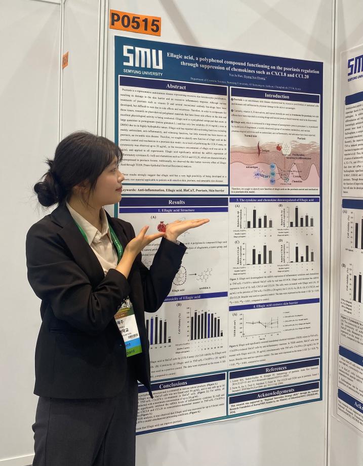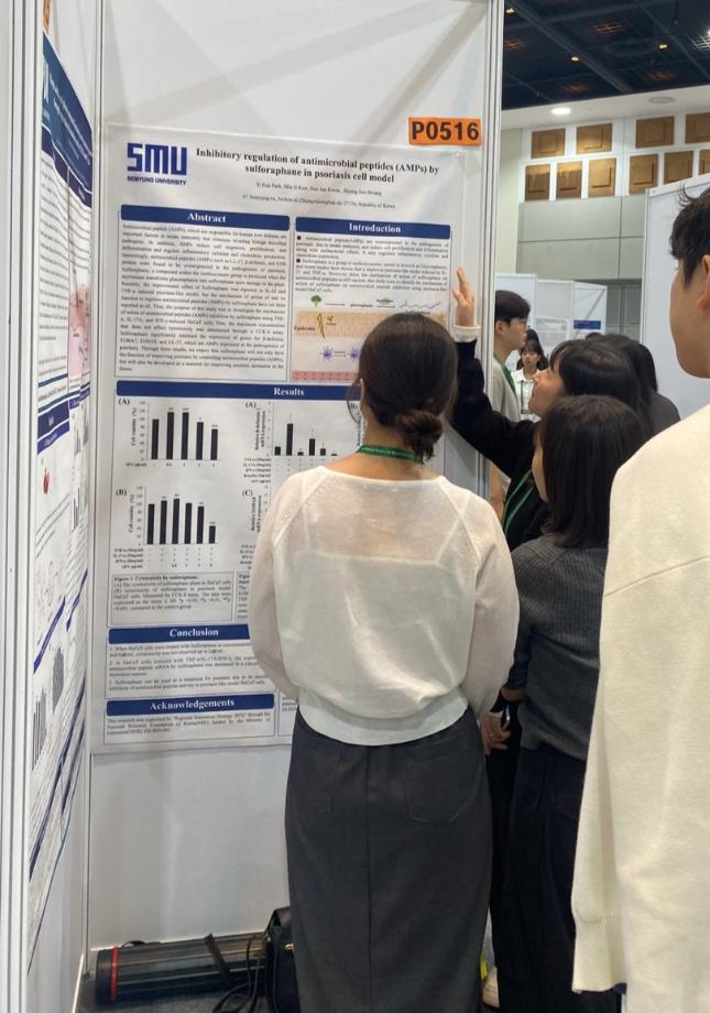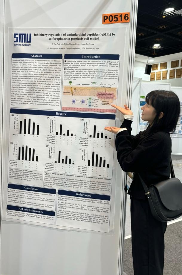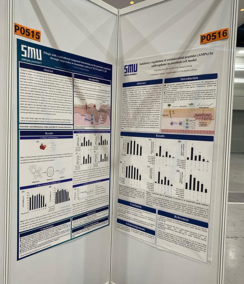 본문 시작 홈으로 커뮤니티 학과소개 학과과정 대학원 커뮤니티 연구동아리 홈페이지가이드 포토갤러리 학과공지 채용정보 학과일정 포토갤러리 유튜브 인스타그램 취업현황 학생회 조직도 졸업생 숏터뷰 포토갤러리 페이스북 트위터 프린트 2024 한국생물공학회 추계 학술발표대회 참가 바이오코스메틱학과 2482 2024-10-10 학회명 : 2024 KSBB Fall Meeting and International Symposium 일 자 : 2024.09.25(수)-27(금) 장 소 : 제주 ICC ‘건선 모델에서 Sulforaphane의 항균펩타이드 (AMPs) 억제 효능’과 ‘건선 모델에서 Ellagic acid의 케모카인 억제 효능‘의 연구를 주제로 박시은, 한예주 학생이 포스터 발표를 진행했습니다! 목록 이전제 32회 청룡축전 “향수 원데이 클래스 이벤트 부스 다음 2024 오송화장품뷰티산업엑스포 현장체험 담당부서 : 바이오코스메틱학과 담당자 : - 연락처 : 043-649-1638 최종수정일 : 2024-10-26 만족도조사 만족도 조사 이 페이지에서 제공하는 정보에 대하여 만족하시나요? 매우만족 만족 보통 불만족 매우불만족