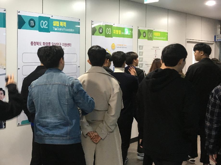 본문 시작 홈으로 커뮤니티 학과소개 학과과정 대학원 커뮤니티 연구동아리 홈페이지가이드 포토갤러리 학과공지 채용정보 학과일정 포토갤러리 유튜브 인스타그램 취업현황 학생회 조직도 졸업생 숏터뷰 포토갤러리 페이스북 트위터 프린트 2018 오송화장품뷰티산업 엑스포 참가 화장품뷰티생명공학부 8046 2018-10-24 작년에 이어 올해도 1,3학년 학생들과 오송화장품뷰티산업 엑스포에 참가하였습니다. 학생들 각자 피부 진단도 받아보고 다양한 화장품 샘플들을 경험하며 즐거운 시간을 가졌습니다. 충청북도화장품임상연구지원센터에도 들려 센터도 돌아보며 취업 목표의식 다지는 시간이었습니다 목록 이전제천중학교 중등교육 연계프로그램(전공체험) 이전의림여중 중등교육 연계프로그램(전공체험) 담당부서 : 바이오코스메틱학과 담당자 : - 연락처 : 043-649-1638 최종수정일 : 2024-10-26 만족도조사 만족도 조사 이 페이지에서 제공하는 정보에 대하여 만족하시나요? 매우만족 만족 보통 불만족 매우불만족