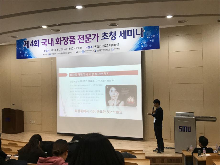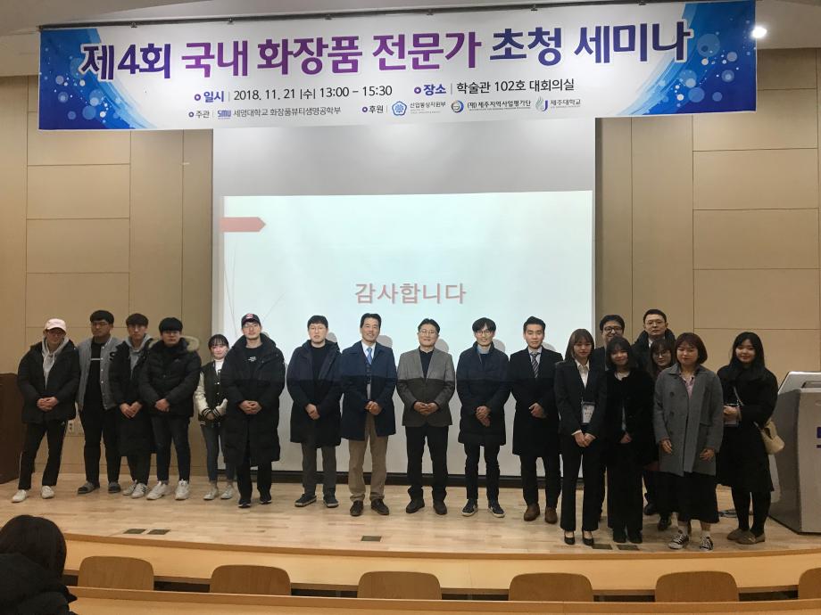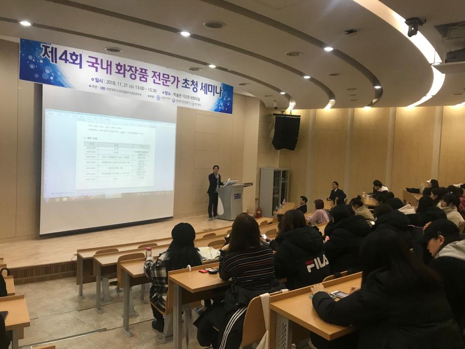 본문 시작 홈으로 커뮤니티 학과소개 학과과정 대학원 커뮤니티 연구동아리 홈페이지가이드 포토갤러리 학과공지 채용정보 학과일정 포토갤러리 유튜브 인스타그램 취업현황 학생회 조직도 졸업생 숏터뷰 포토갤러리 페이스북 트위터 프린트 제4회 국내 화장품전문가 초청 세미나 화장품뷰티생명공학부 7533 2018-11-22 지난 수요일 21일에 국내 유망 화장품 전문가를 초청하여 경제협력권 참여기관 간의 교류의 시간을 가졌습니다. 화장품뷰티생명공학부의 학생들이 참석하여 화장품 전문가 분들의 말씀을 듣고 화장품산업에 대한 동향과 화장품관련 지식을 전달받고 이해하는 유익한 시간이었습니다. 목록 이전2018 화장품회사 견학 다음 제1회 화장품뷰티생명공학부 캡스톤 디자인 대회 담당부서 : 바이오코스메틱학과 담당자 : - 연락처 : 043-649-1638 최종수정일 : 2024-10-26 만족도조사 만족도 조사 이 페이지에서 제공하는 정보에 대하여 만족하시나요? 매우만족 만족 보통 불만족 매우불만족