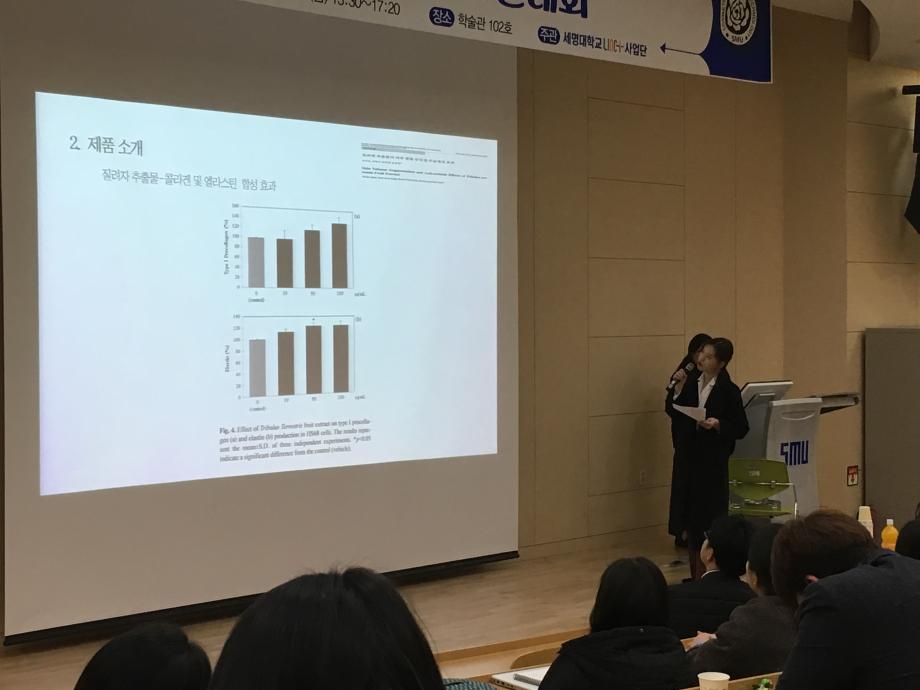 본문 시작 홈으로 커뮤니티 학과소개 학과과정 대학원 커뮤니티 연구동아리 홈페이지가이드 포토갤러리 학과공지 채용정보 학과일정 포토갤러리 유튜브 인스타그램 취업현황 학생회 조직도 졸업생 숏터뷰 포토갤러리 페이스북 트위터 프린트 제1회 화장품뷰티생명공학부 캡스톤 디자인 대회 화장품뷰티생명공학부 7442 2018-12-04 지난 11월 23일 학술관 102호에서 장혜인 교수님의 지도하에 제1회 캡스톤디자인 대회가 열렸습니다. 총 17개 조가 참가하여 다양한 화장품에 대한 아이디어를 발표하였고 항목별로 평가하는 시간을 가졌습니다. 발표하는 학생뿐만 아니라 평가를 하는 학생들도 질문과 답변을 주고 받으며 열의가 돋보이는 발표시간이었습니다. 목록 이전제4회 국내 화장품전문가 초청 세미나 다음 2018 동계 LINC+ 바이오산업품질관리학 학술 특강 담당부서 : 바이오코스메틱학과 담당자 : - 연락처 : 043-649-1638 최종수정일 : 2024-10-26 만족도조사 만족도 조사 이 페이지에서 제공하는 정보에 대하여 만족하시나요? 매우만족 만족 보통 불만족 매우불만족
