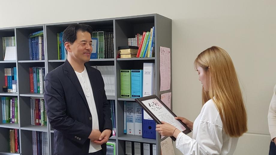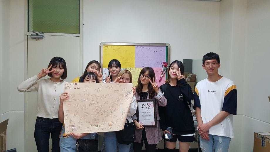 본문 시작 홈으로 커뮤니티 학과소개 학과과정 대학원 커뮤니티 연구동아리 홈페이지가이드 포토갤러리 학과공지 채용정보 학과일정 포토갤러리 유튜브 인스타그램 취업현황 학생회 조직도 졸업생 숏터뷰 포토갤러리 페이스북 트위터 프린트 스승의 날, 학생회에서 준비한 행사 화장품뷰티생명공학부 7547 2019-05-15 화장품뷰티생명공학부의 학생회에서 스승의 날을 맞이하여, 교수님들께 학생들을 대표하여 감사의 마음을 전하는 시간을 가졌습니다. 존경의 마음을 담은 예쁜 꽃과 롤링페이퍼를 준비한 우리 학생들 덕분에 교수님들과 얼굴에 웃음꽃이 피었습니다. 조교들까지 챙겨준 학생회 친구들 덕분에 더 열심히 일해야겠습니다^^ 목록 이전의림여자중학교 중등연계 프로그램 시행 다음 제29회 청룡체전 시행 담당부서 : 바이오코스메틱학과 담당자 : - 연락처 : 043-649-1638 최종수정일 : 2024-10-26 만족도조사 만족도 조사 이 페이지에서 제공하는 정보에 대하여 만족하시나요? 매우만족 만족 보통 불만족 매우불만족