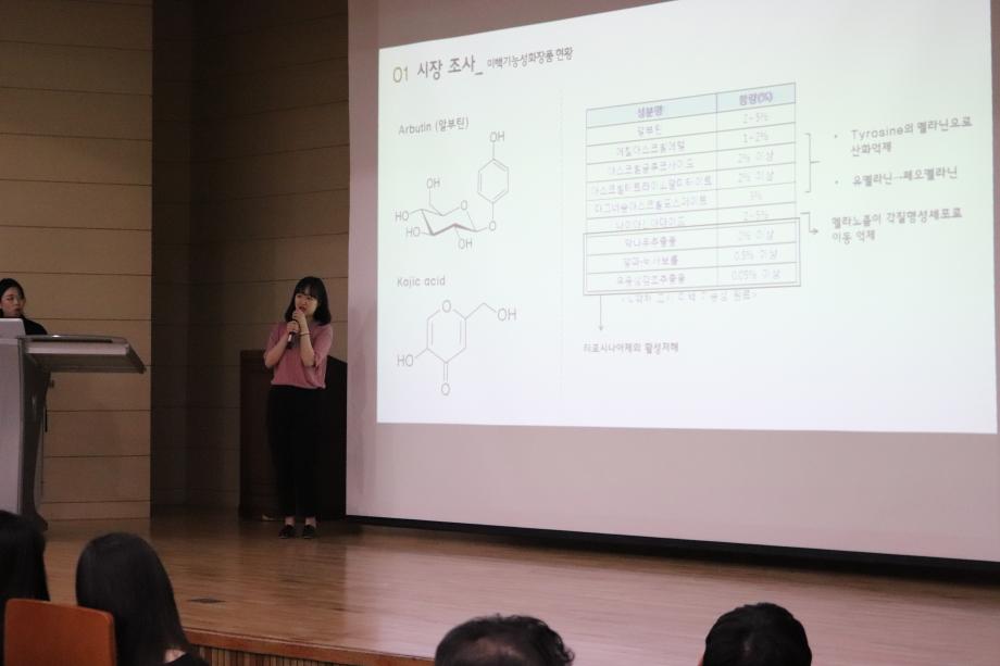 본문 시작 홈으로 커뮤니티 학과소개 학과과정 대학원 커뮤니티 연구동아리 홈페이지가이드 포토갤러리 학과공지 채용정보 학과일정 포토갤러리 유튜브 인스타그램 취업현황 학생회 조직도 졸업생 숏터뷰 포토갤러리 페이스북 트위터 프린트 제2회 캡스톤 디자인 대회 화장품뷰티생명공학부 7599 2019-06-13 지난 06월 11일 화요일, 우리 화장품뷰티생명공학부 3-4학년 학생들이 참가하는 제2회 캡스톤 디자인 대회가 학술관 112호에서 열렸습니다. LINC+사업단의 지원을 받고 장혜인 교수님의 지도 아래, 기초화장품제조및실습 과목과 기능성화장품제조및실습 과목을 수강한 3-4학년 학생들이 다양한 아이디어를 발표했습니다. 학생들간에 서로 질의응답 시간을 가지며 제안된 아이디어에 대해 문제점을 함께 생각해보고 고민해 보기도 하는 유익한 시간이었습니다. 목록 이전학부동아리 활동 - 순정 다음 대제중 전공체험 프로그램 시행 담당부서 : 바이오코스메틱학과 담당자 : - 연락처 : 043-649-1638 최종수정일 : 2024-10-26 만족도조사 만족도 조사 이 페이지에서 제공하는 정보에 대하여 만족하시나요? 매우만족 만족 보통 불만족 매우불만족