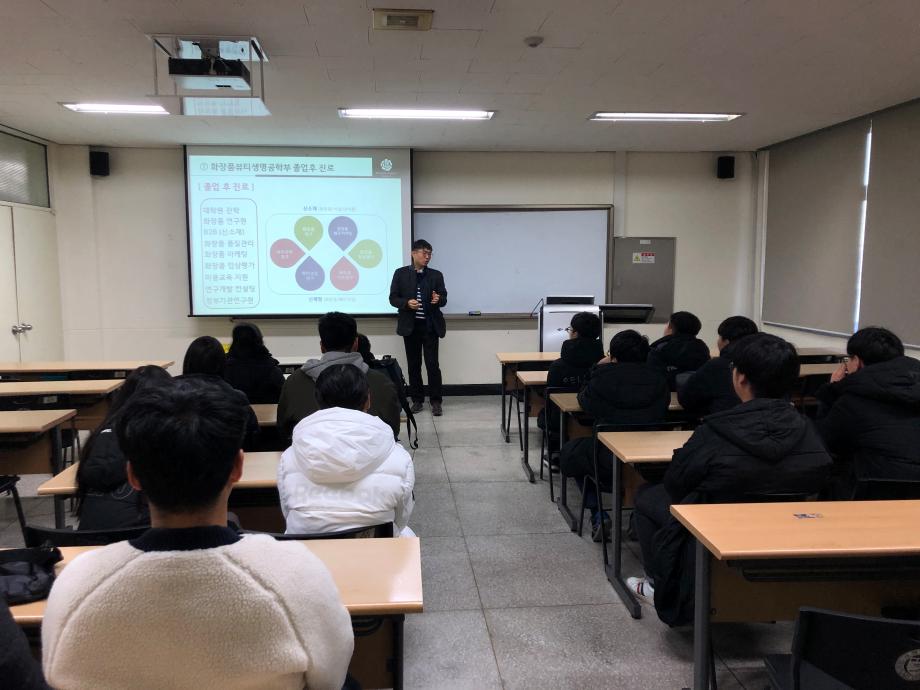본문 시작 홈으로 커뮤니티 학과소개 학과과정 대학원 커뮤니티 연구동아리 홈페이지가이드 포토갤러리 학과공지 채용정보 학과일정 포토갤러리 유튜브 인스타그램 취업현황 학생회 조직도 졸업생 숏터뷰 포토갤러리 페이스북 트위터 프린트 수산중학교 학생들과 함께하는 전공체험 워크샵 화장품뷰티생명공학부 8509 2019-12-02 수산중학교 12명(1~3학년)의 학생들이 전공을 체험하러 이공학관 3층으로 찾아왔습니다. 학생들은 이공학관 305호에서 교수님 소개와 화장품뷰티생명공학부 소개를 들었습니다. 그 후 우리 학부의 실험실과 한방바이오산업 임상지원센터도 견학하였습니다. 학생들에게는 직접 보고 체험하면서 기억에 남을 특별한 시간이었습니다. ^^ 목록 이전제1회 화장품뷰티생명공학부 전공체험 워크샵 다음 2019년 화장품뷰티생명공학부 캡스톤디자인대회 담당부서 : 바이오코스메틱학과 담당자 : - 연락처 : 043-649-1638 최종수정일 : 2024-10-26 만족도조사 만족도 조사 이 페이지에서 제공하는 정보에 대하여 만족하시나요? 매우만족 만족 보통 불만족 매우불만족