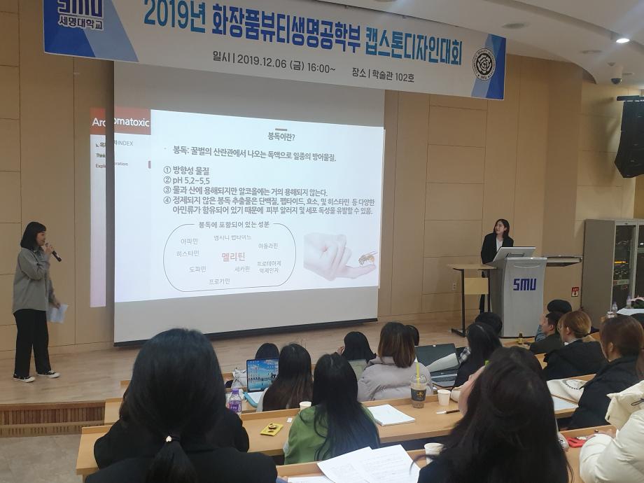 본문 시작 홈으로 커뮤니티 학과소개 학과과정 대학원 커뮤니티 연구동아리 홈페이지가이드 포토갤러리 학과공지 채용정보 학과일정 포토갤러리 유튜브 인스타그램 취업현황 학생회 조직도 졸업생 숏터뷰 포토갤러리 페이스북 트위터 프린트 2019년 화장품뷰티생명공학부 캡스톤디자인대회 화장품뷰티생명공학부 8597 2019-12-06 16시부터 학술관 102호에서 화장품뷰티생명공학부의 캡스톤디자인대회가 열렸습니다, 학생들은 조별로 질 좋은 화장품, 디자인 등을 생각해내어 그 분야에 대해 연구하였고, 그 결과를 발표하며 서로의 아이디어와 지식을 공유하였습니다. 목록 이전수산중학교 학생들과 함께하는 전공체험 워크샵 다음 「제1회 사임당화장품 아이디어 공모전」화장품뷰티생명공학부 학생 비전상 입상 담당부서 : 바이오코스메틱학과 담당자 : - 연락처 : 043-649-1638 최종수정일 : 2024-10-26 만족도조사 만족도 조사 이 페이지에서 제공하는 정보에 대하여 만족하시나요? 매우만족 만족 보통 불만족 매우불만족