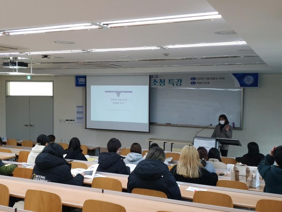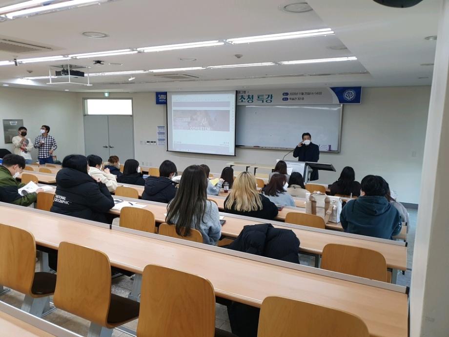 11월 25일 학술관 301호에서는 보건바이오대학 특화 취업프로그램으로 바이오계열 "화장품뷰티생명" 분야 졸업생 초청 강연회가 개최되었습니다.