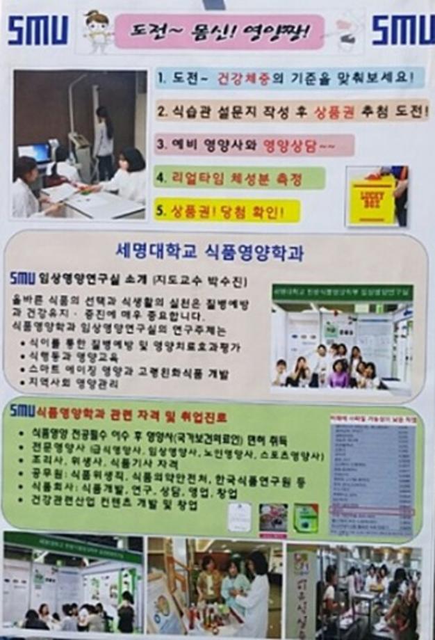 본문 시작 홈으로 커뮤니티 학부소개 진로·취업 교육과정 커뮤니티 대학원 입학상담 홈페이지가이드 갤러리 공지사항 문의게시판 학생회 전공동아리 동문회 갤러리 전공자료실 Youtube Instagram Facebook Blog 갤러리 페이스북 트위터 프린트 2015년 청룡체전 학과홍보 체성분측정 전체관리자 7205 2016-09-08 2015년 청룡체전 식품영양학과 홍보 체성분 측정 및 영양상담 입니다. 지도교수님 : 박수진 교수님 목록 이전한방식품영양학부 임상영양연구실 다음 2015년 8월 13일 후기졸업식 담당부서 : 바이오식품산업학부 담당자 : - 연락처 : 043-649-1431 최종수정일 : 2024-10-26 만족도조사 만족도 조사 이 페이지에서 제공하는 정보에 대하여 만족하시나요? 매우만족 만족 보통 불만족 매우불만족